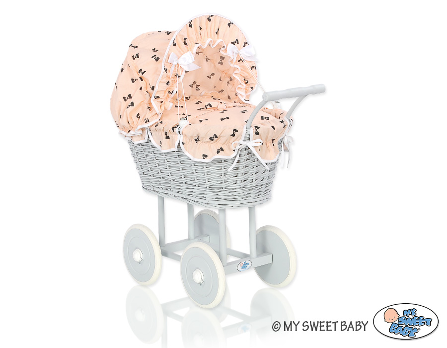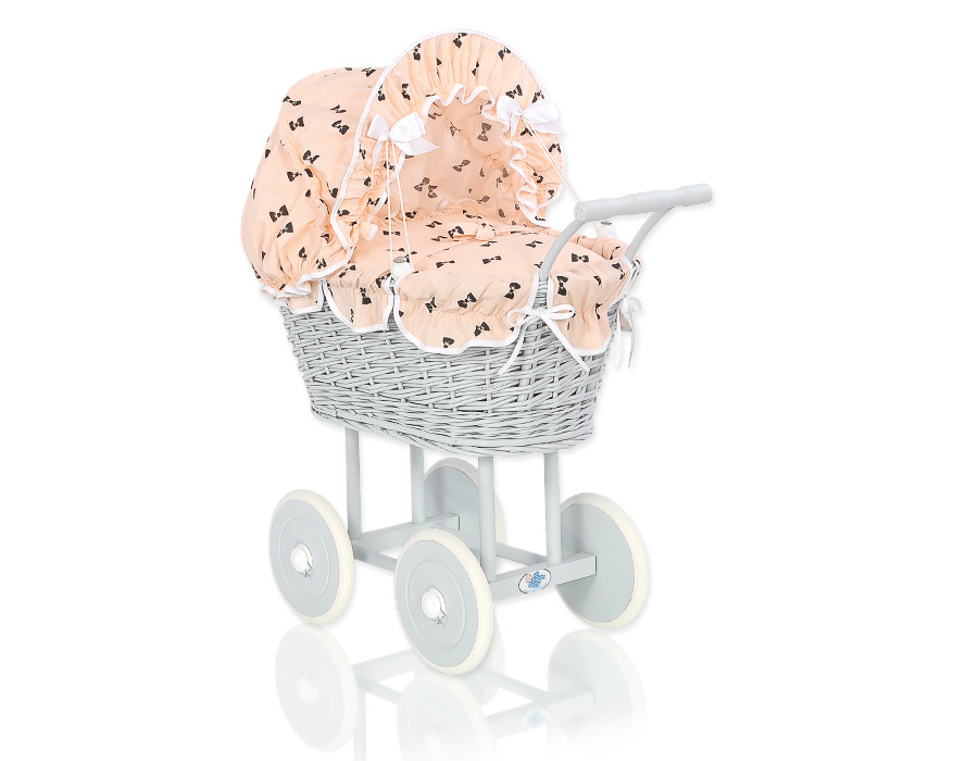Stubenwagen » Spielzeug Kuscheltiere » Puppenwagen und Spielzeug » Puppenwagen aus Weide » Grau VintagePuppenwagen Bettwäsche Schleifenmuster nr 61699-762