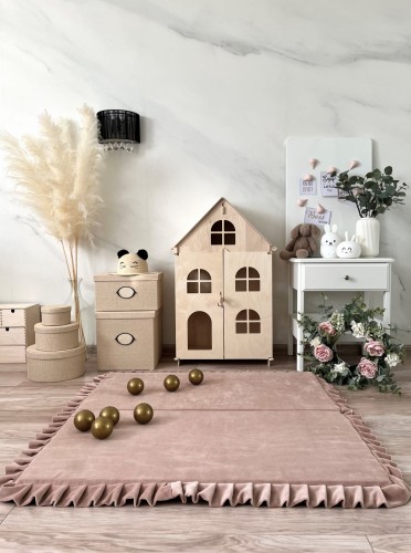 Die faltbare quadratische Spielmatte aus Velvet mit Rüschen ist nicht nur ein Ort zum Spielen, sondern kann auch als gemütliche Leseecke oder Entspannungsbereich genutzt werden. Die Kinder können sie flach auf den Boden legen oder zur Hälfte falten und an die Wand lehnen.