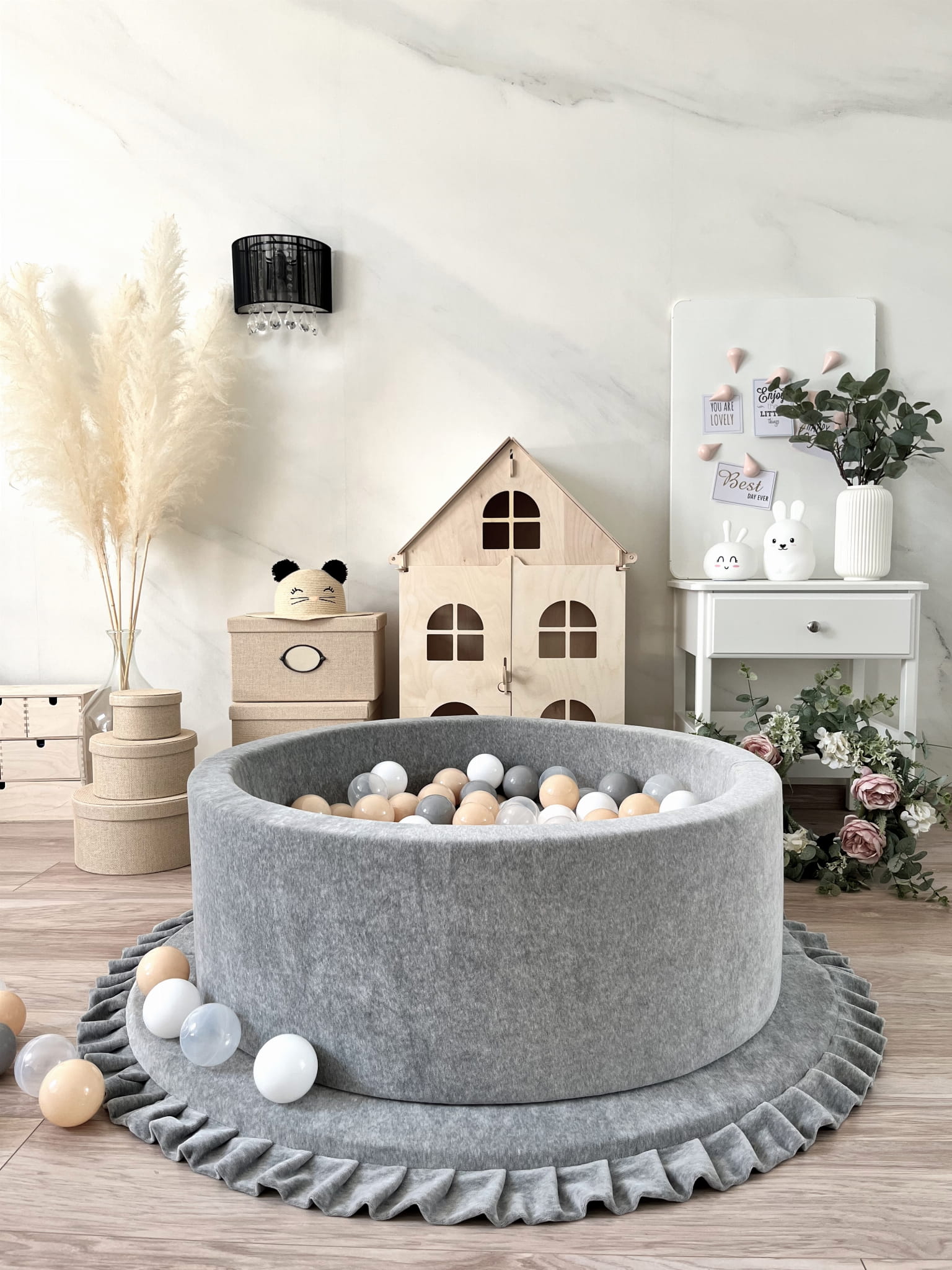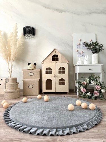 Suchen Sie nach der perfekten große Spielmatte zum Toben, Spielen, Krabbeln und Entspannen? Voilà! Diese vielseitige, weiche Schaumstoffmatte wird all Ihren Bedürfnissen gerecht. Mit Leichtigkeit können Sie sie an die Wand klappen und in ein bequemes Sofakissen verwandeln, ideal für die kuschelige Ecke. Die schicken Rüschen und der elegante Samtbezug sind absolut im Trend und machen sie zu einem wahren Schmuckstück im Kinderzimmer.