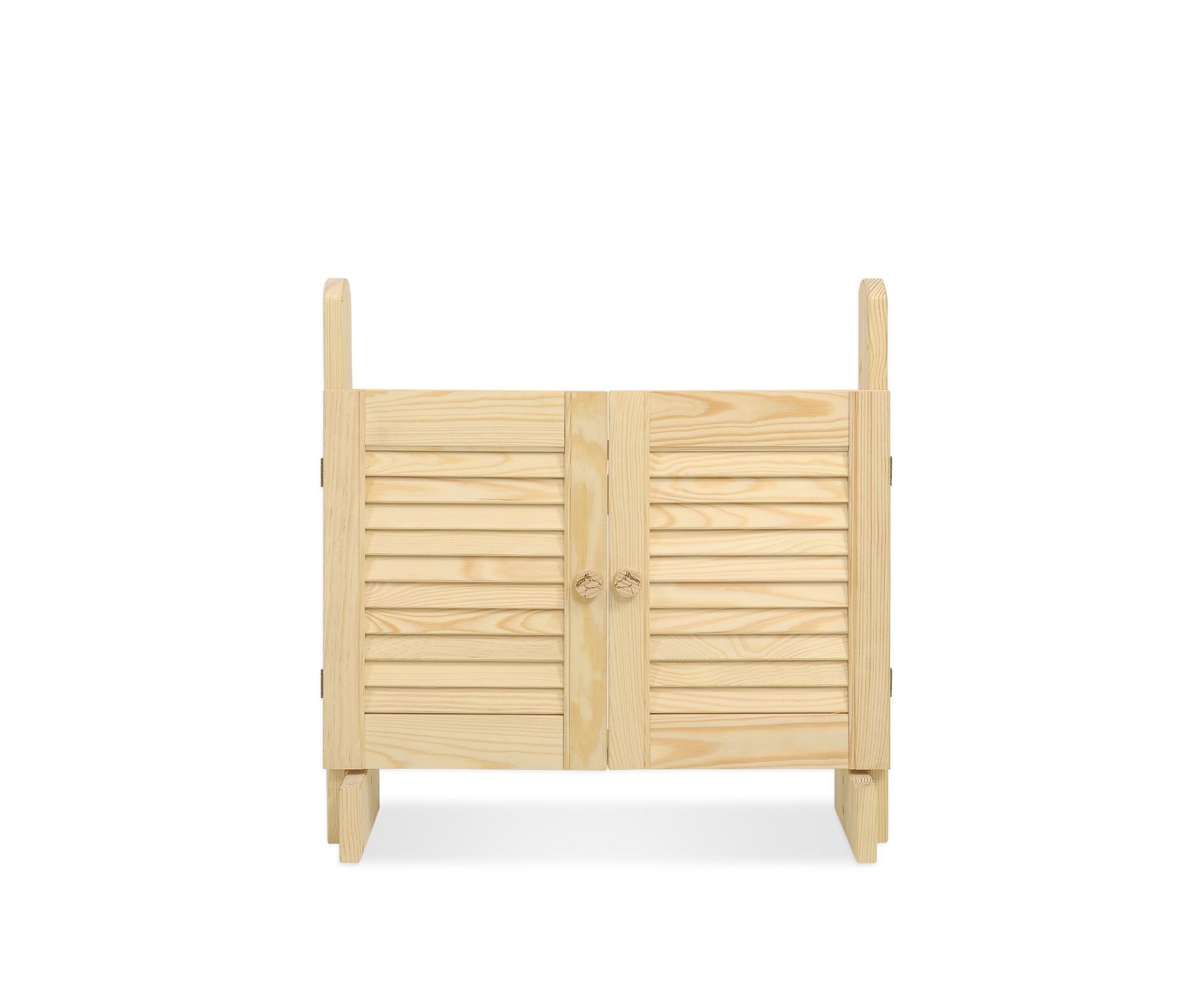 Türen an soliden Doppelscharnieren. Die Türen sind elegant im Stil von Fensterläden, wodurch der Stall perfekt in jedes Kinderzimmer passt. Dank der abschließbaren Tür ist eine vorübergehende Unordnung im Stall nicht sichtbar.