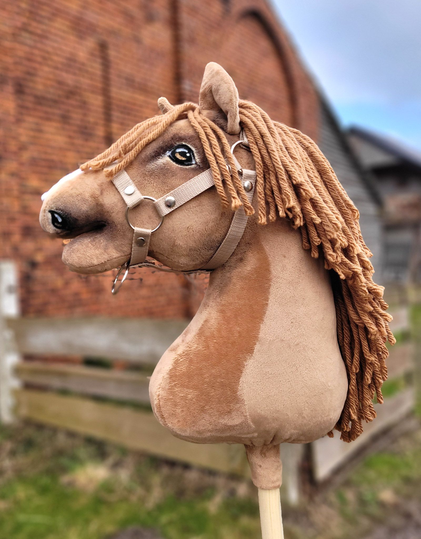 Super Hobby Horse - schönes realistisches großes Hobby Horse mit Holzstock - helle Kastanie Pferd