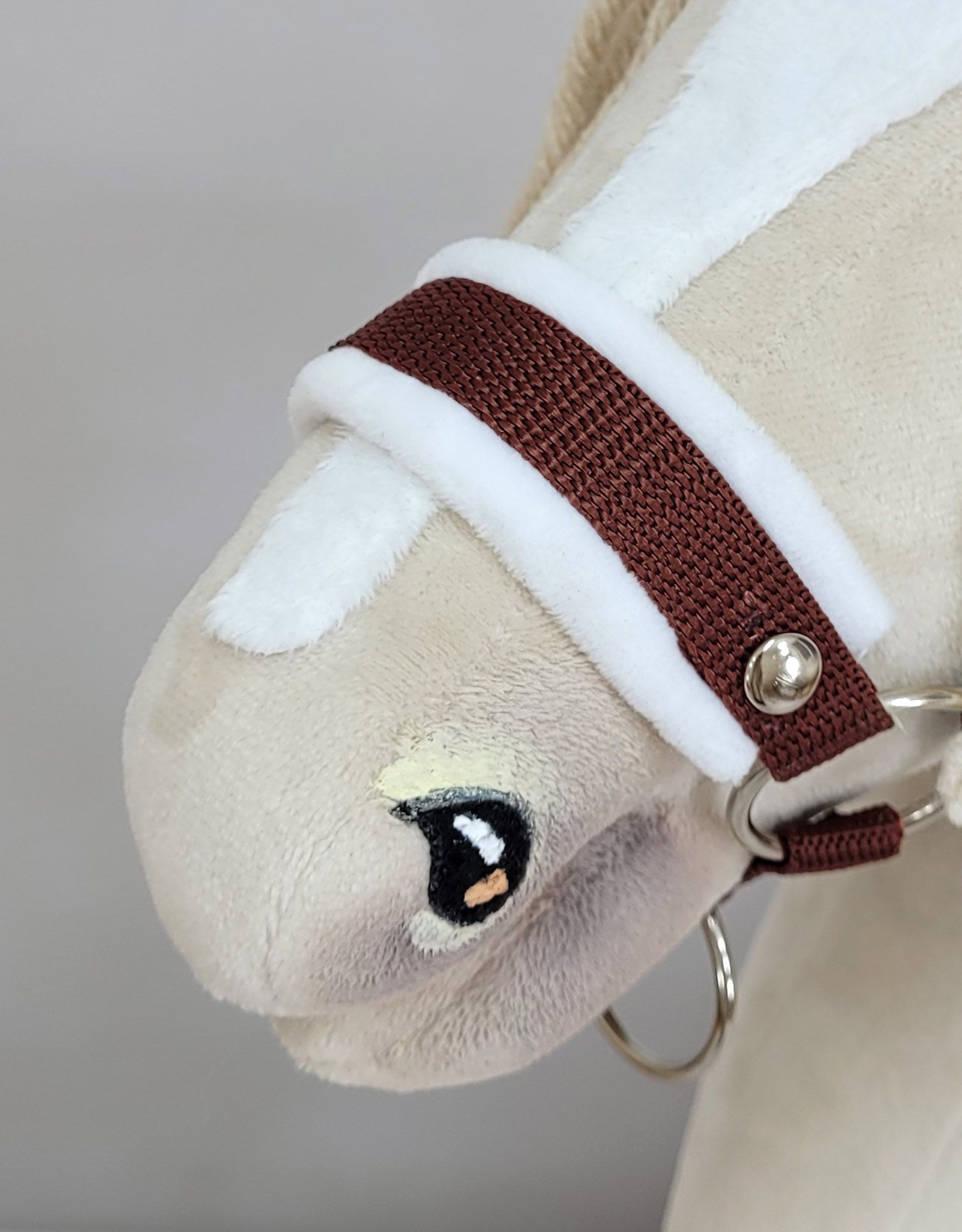Halfter für Steckenpferd A3 - brown mit weißem Pelz