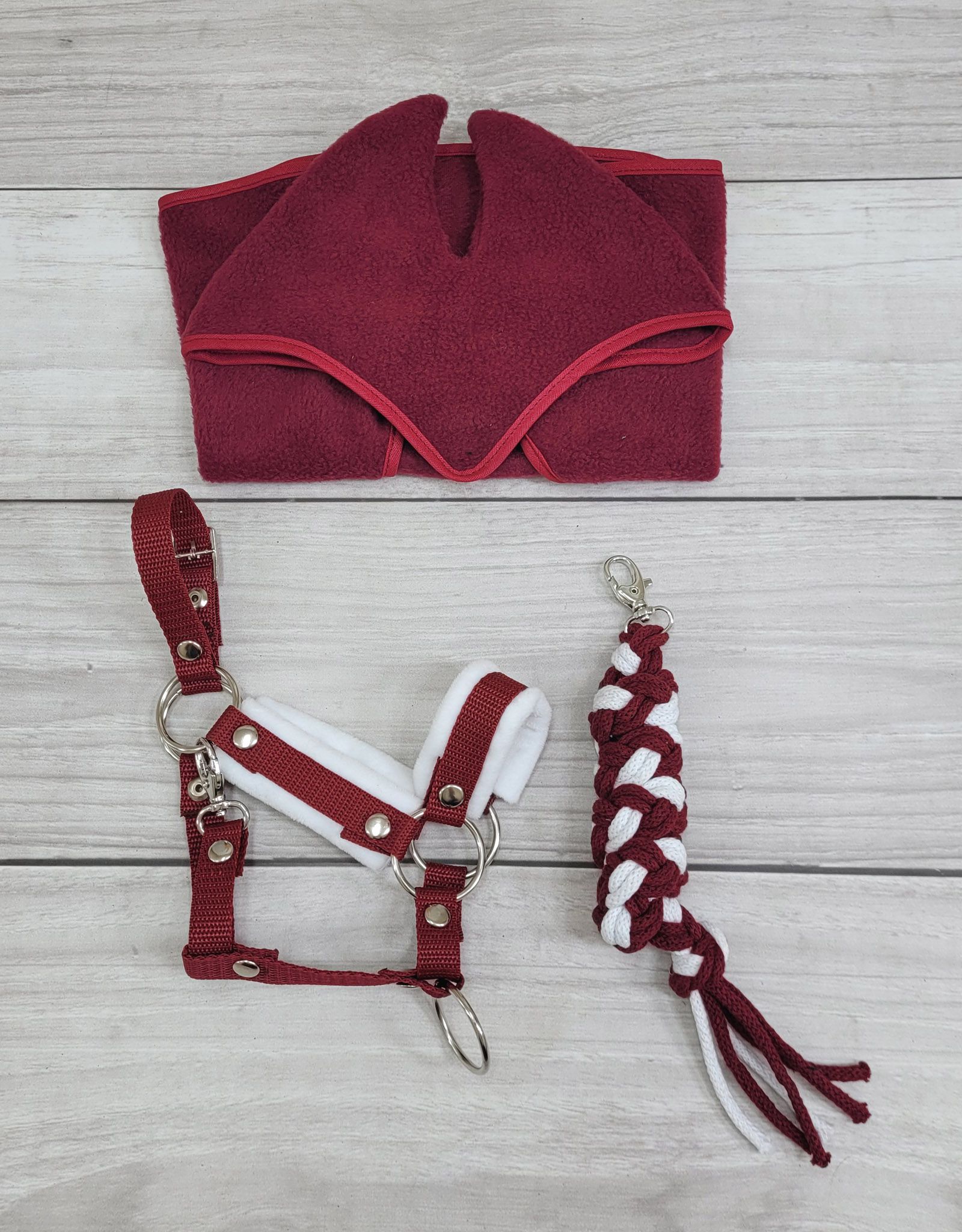 Halfter für Steckenpferd A3 - Rotbraun mit weißem Pelz