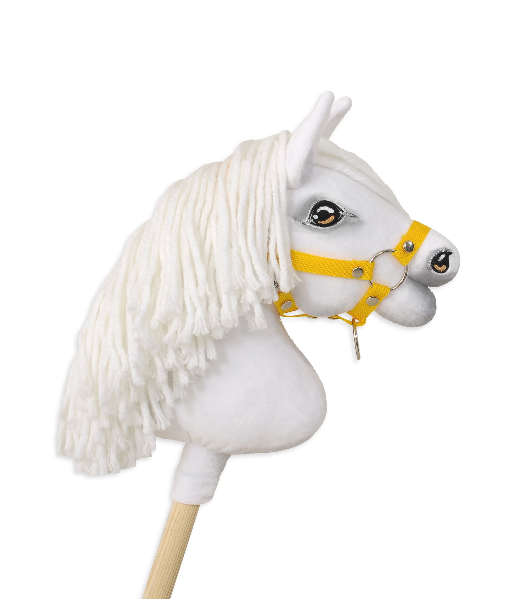 Ein praktisches und haltbares Halfter für das Hobby-Pferd. Hergestellt aus hochwertigem Gurtband von 1,5 cm Breite. Einfacher Verschluss mit Karabinerhaken. Metallelemente des Halfters - wie die Verschlüsse, Metallringe und Karabinerhakenverschluss in silberner Farbe. Alles elegant und praktisch. Das Halfter ist einfach zu handhaben, robust und schmutzabweisend. Es werden viele modische Farben angeboten, die perfekt auf unsere Hobbypferde abgestimmt werden können.