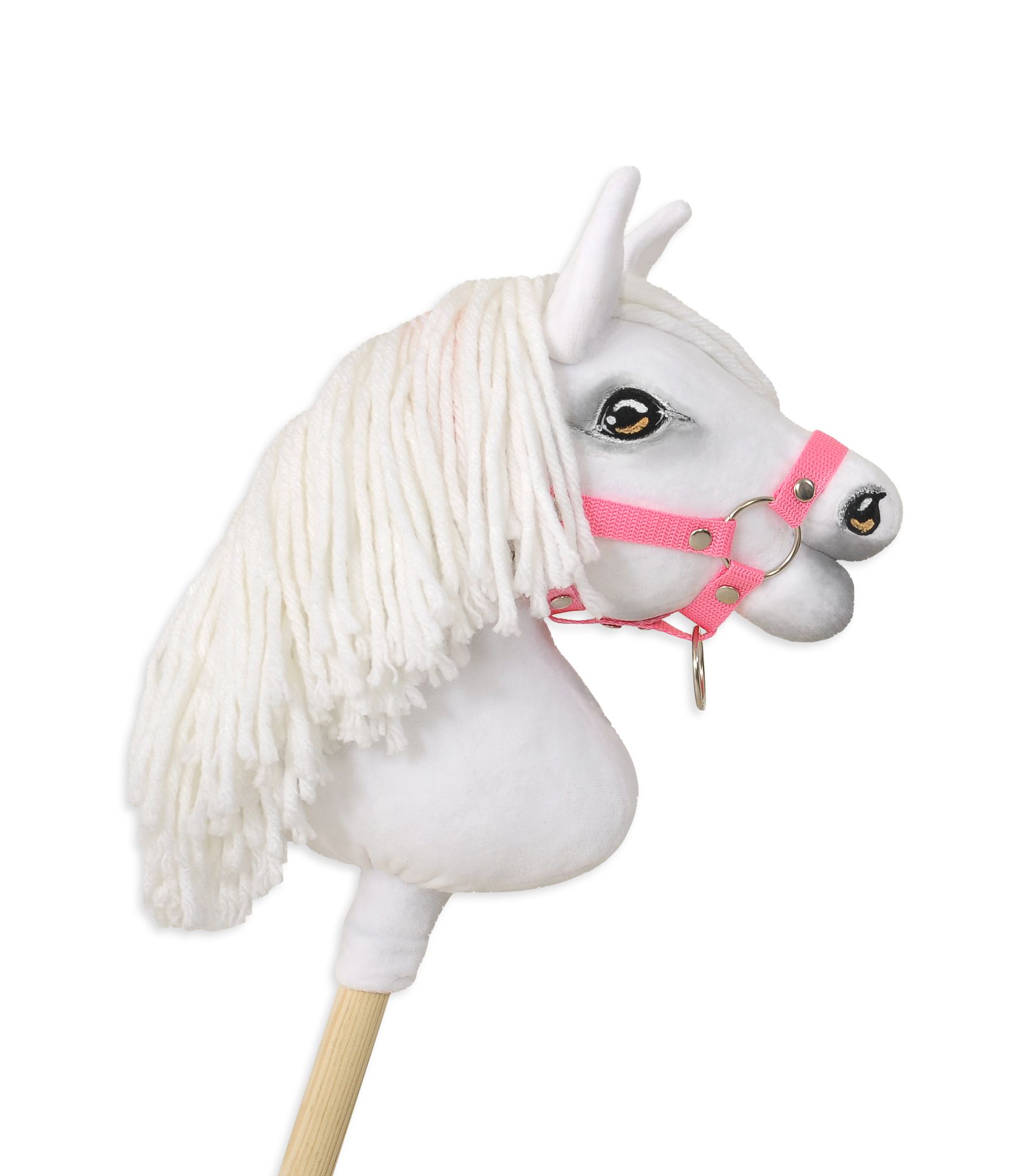 Ein praktisches und haltbares Halfter für das Hobby-Pferd. Hergestellt aus hochwertigem Gurtband von 1,5 cm Breite. Einfacher Verschluss mit Karabinerhaken. Metallelemente des Halfters - wie die Verschlüsse, Metallringe und Karabinerhakenverschluss in silberner Farbe. Alles elegant und praktisch. Das Halfter ist einfach zu handhaben, robust und schmutzabweisend. Es werden viele modische Farben angeboten, die perfekt auf unsere Hobbypferde abgestimmt werden können.