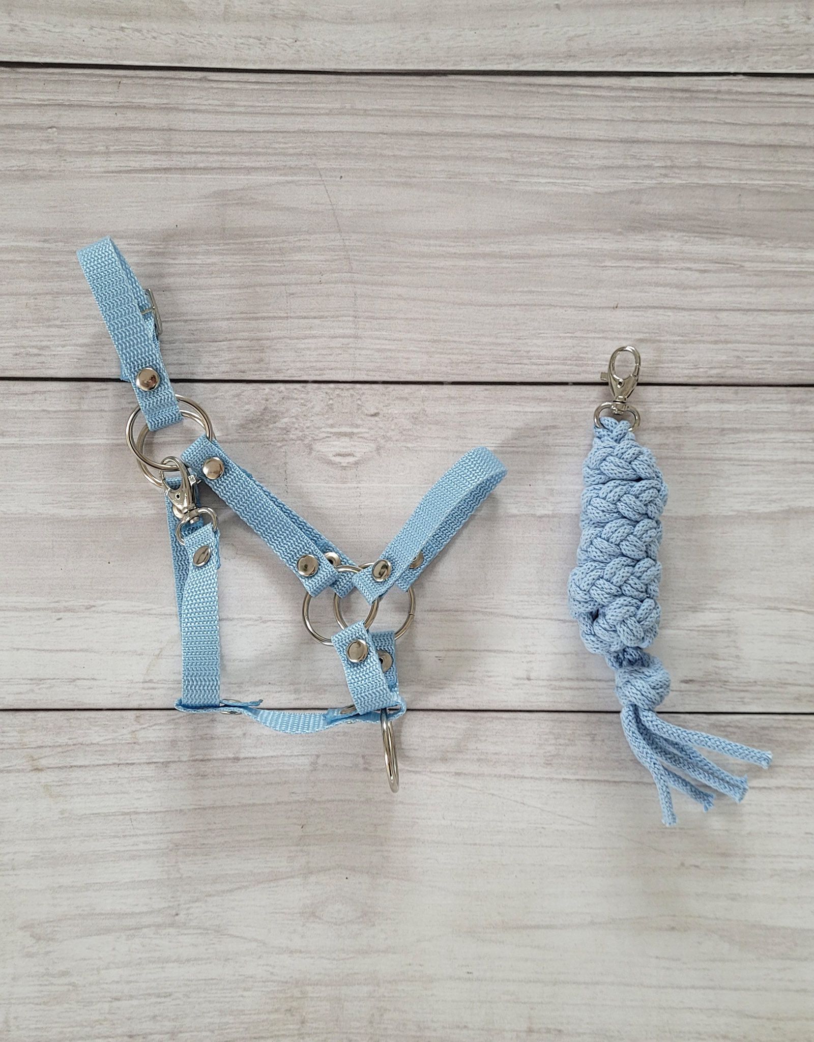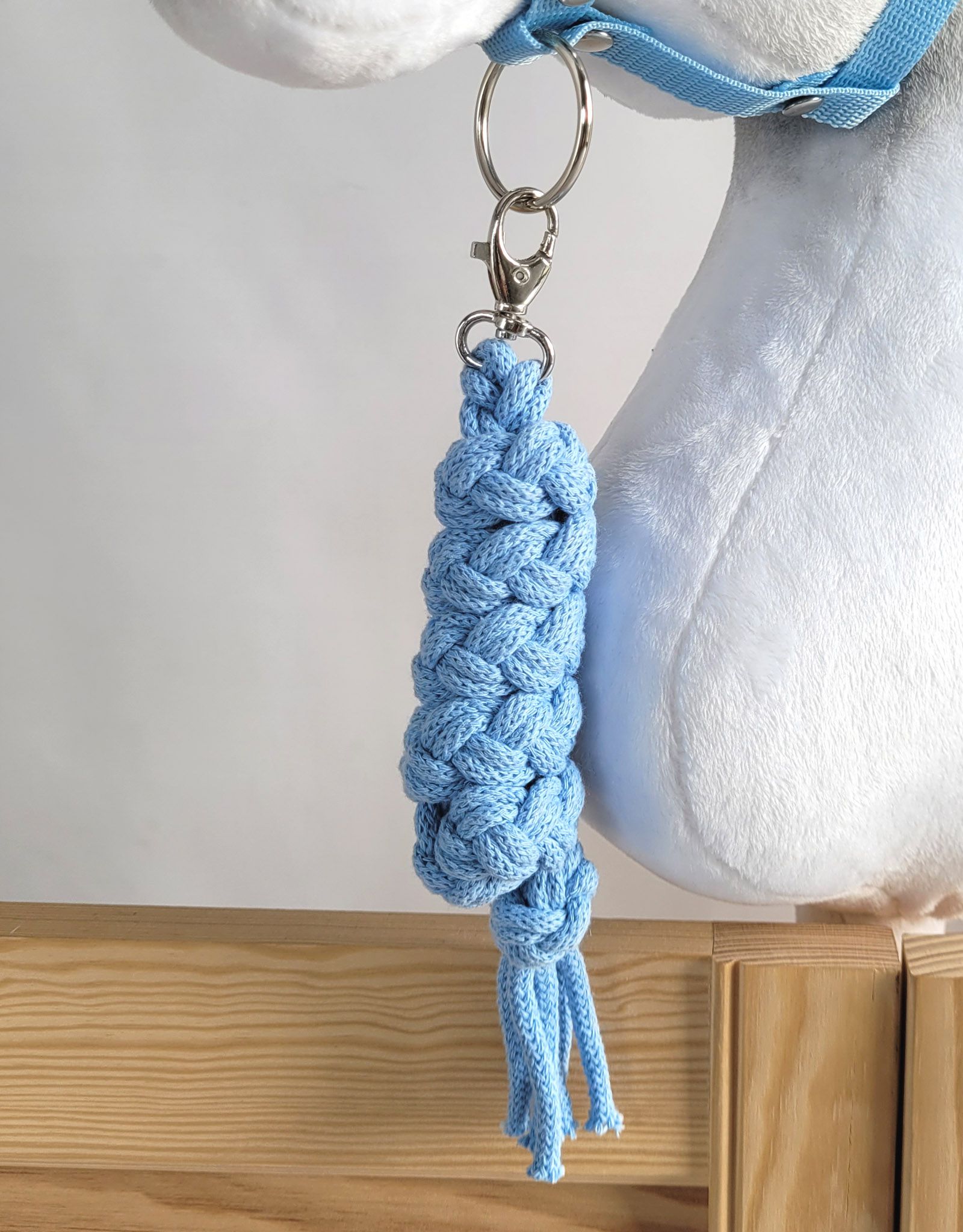 Ein praktisches und haltbares Halfter für das Hobby-Pferd. Hergestellt aus hochwertigem Gurtband von 1,5 cm Breite. Verstellbare Schnalle für eine perfekte Anpassung an das Pferd. Einfacher Verschluss mit Karabinerhaken. Metallelemente des Halfters - wie die Verschlüsse, Metallringe, Schnalle zum Verstellen und Karabinerhakenverschluss in silberner Farbe. Alles elegant und praktisch. Das Halfter ist einfach zu handhaben, robust und schmutzabweisend. Es werden viele modische Farben angeboten, die perfekt auf unsere Hobbypferde abgestimmt werden können.