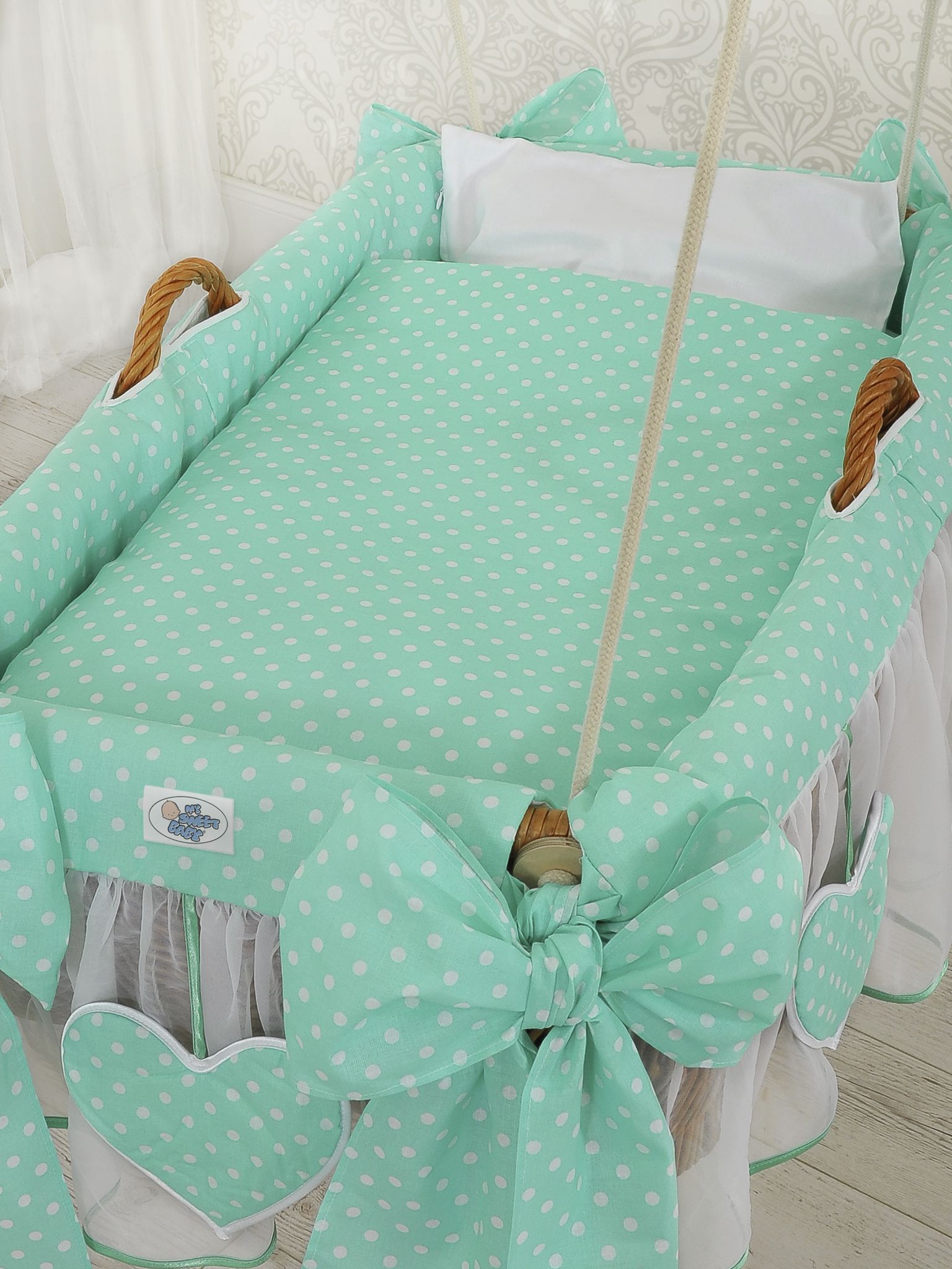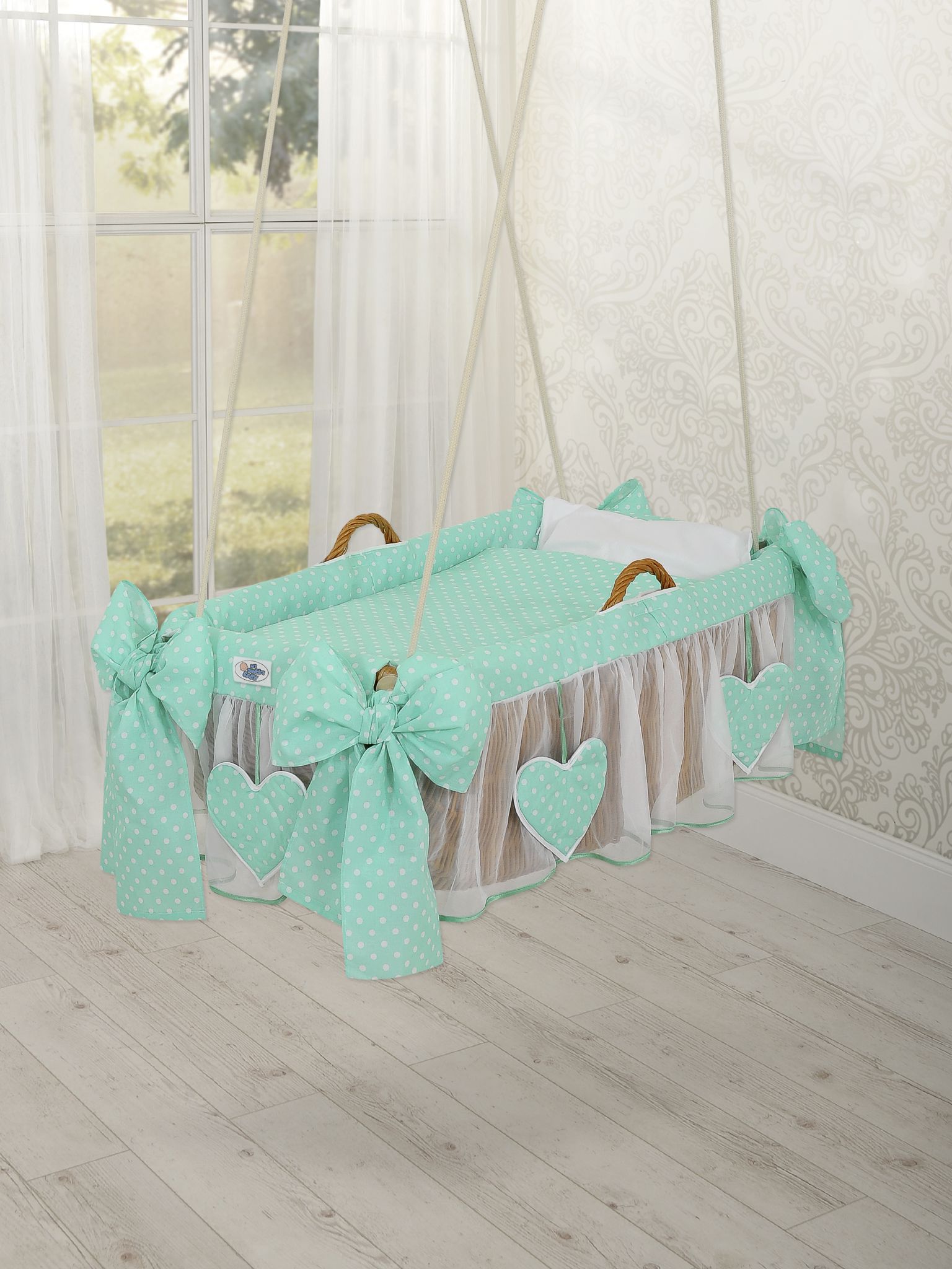 Hängekorb mit charakteristischen "Dutch" -Webart, der an der Decke hängend befestigt wird. Matratze mit abnehmbaren Bezug.