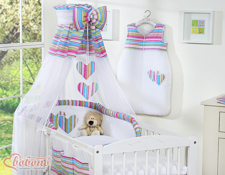 Himmel aus Chiffon - Hängende Herzen lila gestreift Wunderschöner Himmel aus Chiffon. Schutz vor direktem Lichteinfall und Zugluft. Höhste Qualität und solide Verarbeitung. Mit Hilfe einer Himmelstange kann der Himmel schön über dem Bettchen platziert werden.