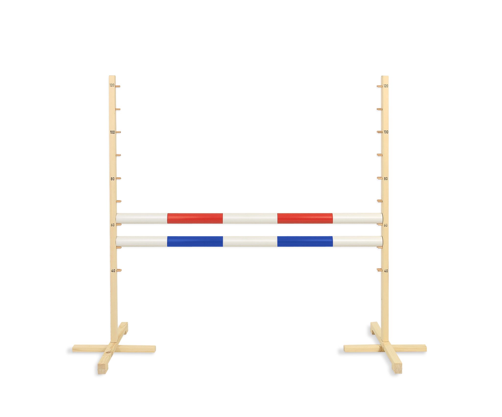 Das Hindernis ist haltbar und sicher, aus perfekt geschliffenem Kiefernholz gefertigt, damit sich das Kind beim Springen oder Bewegen des Ständers nicht verletzt. Das Hindernis hat stabile Füße, um sicher zu stehen. Die Stäbe sind aus Kunststoff, leicht und in mehreren Farbvarianten erhältlich.