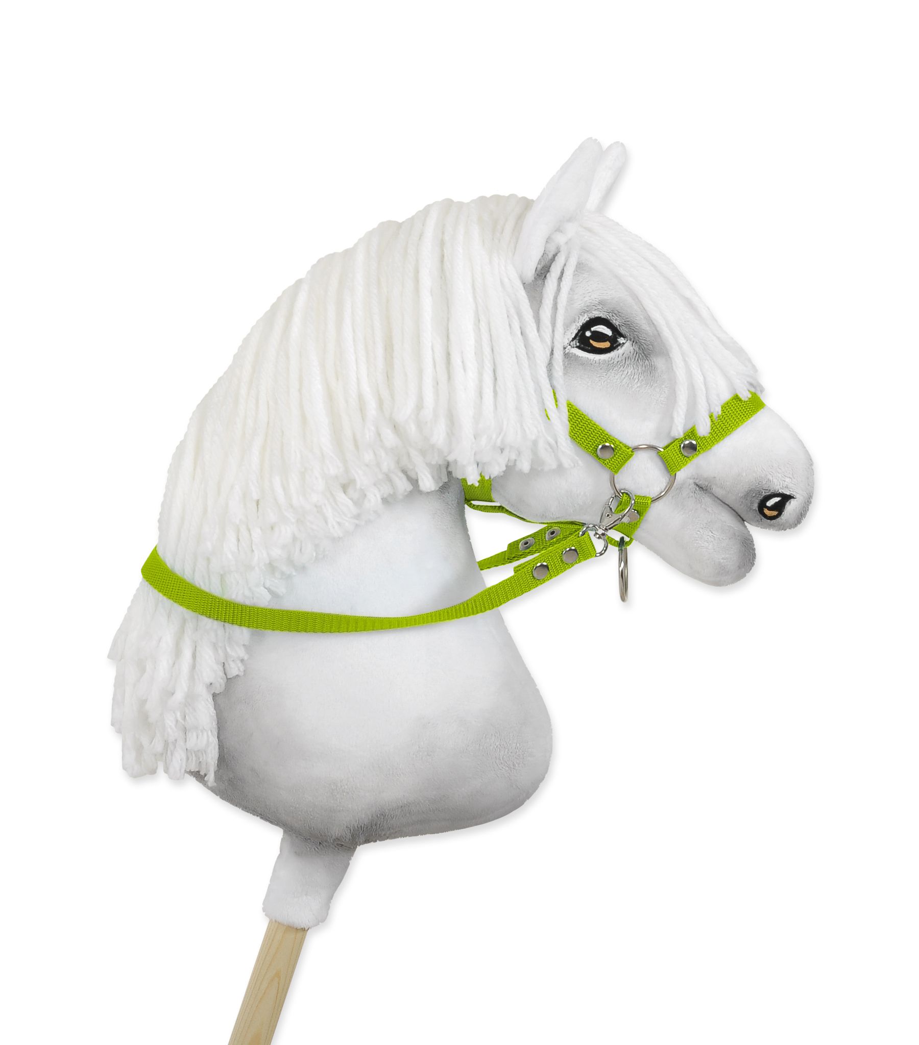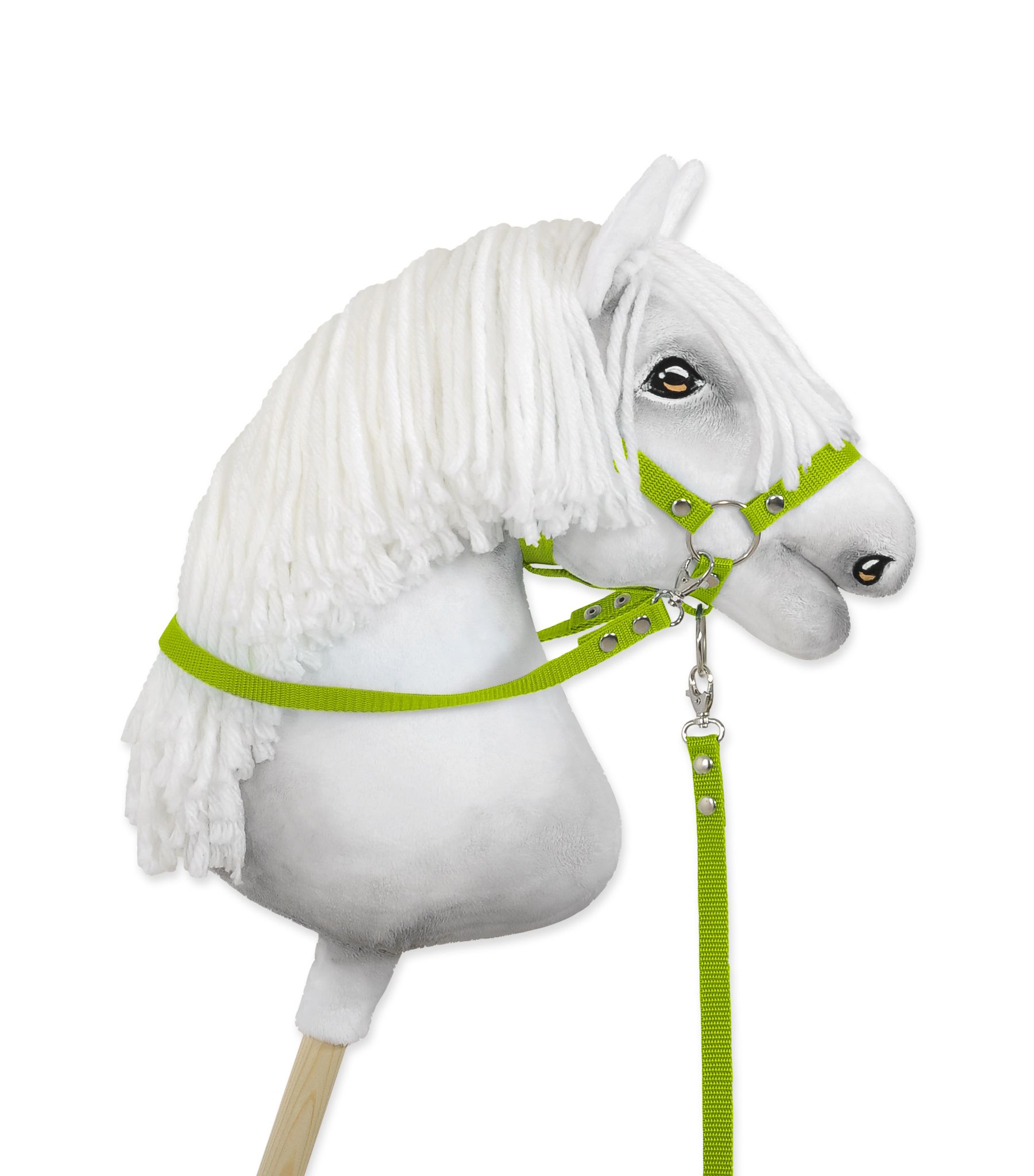 Praktische und haltbare Zügel für Hobby Horse. Die Zügel sind handgefertigt aus hochwertigem Gurtband, 1,5 cm breit. Die Hobby Horse Zügel sind beidseitig mit Karabinerhaken versehen, was eine unkomplizierte Befestigungan an den Halfter, Halfter oder Zügel ermöglicht. Die Metallelemente des Zügels - die Schnalle und der Druckknopf - sind in Silber. Die Zügel sind leicht zu handhaben, robust und schmutzabweisend.