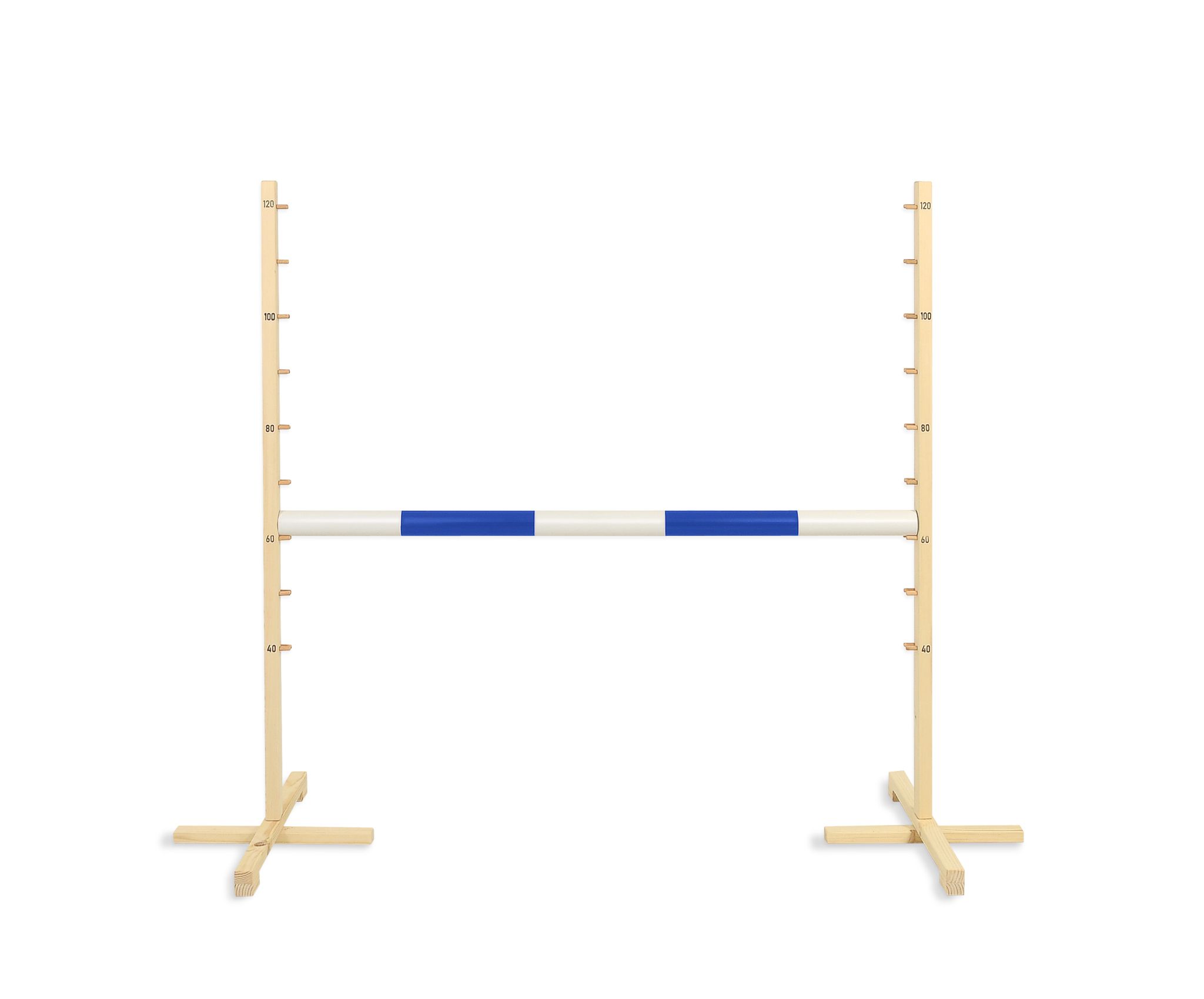 Das Hindernis ist haltbar und sicher, aus perfekt geschliffenem Kiefernholz gefertigt, damit sich das Kind beim Springen oder Bewegen des Ständers nicht verletzt. Das Hindernis hat stabile Füße, um sicher zu stehen. Die Stäbe sind aus Kunststoff, leicht und in mehreren Farbvarianten erhältlich.