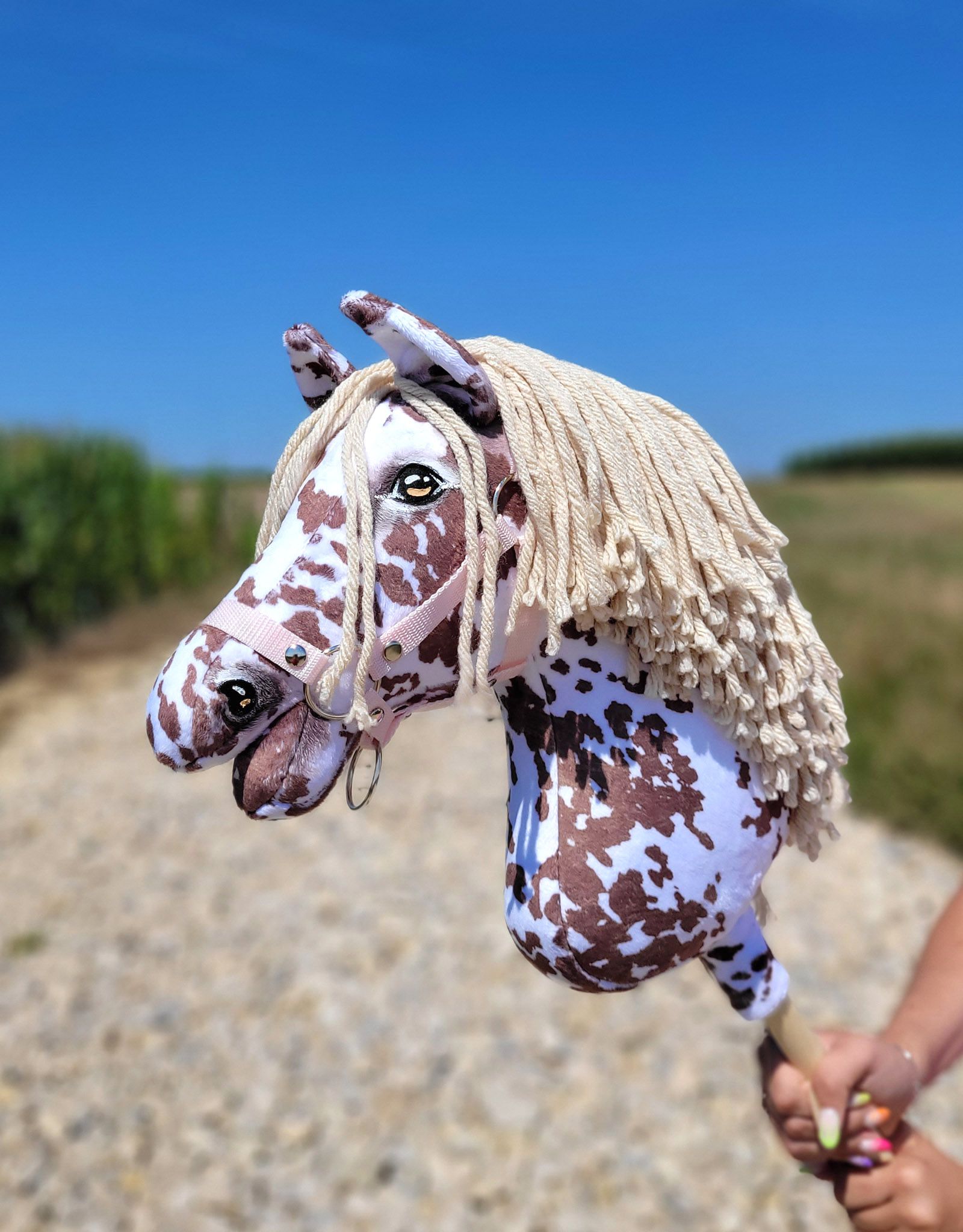 Hobby Horse Steckenpferd brauner Leopard Pferd mit beiger Mähne A3