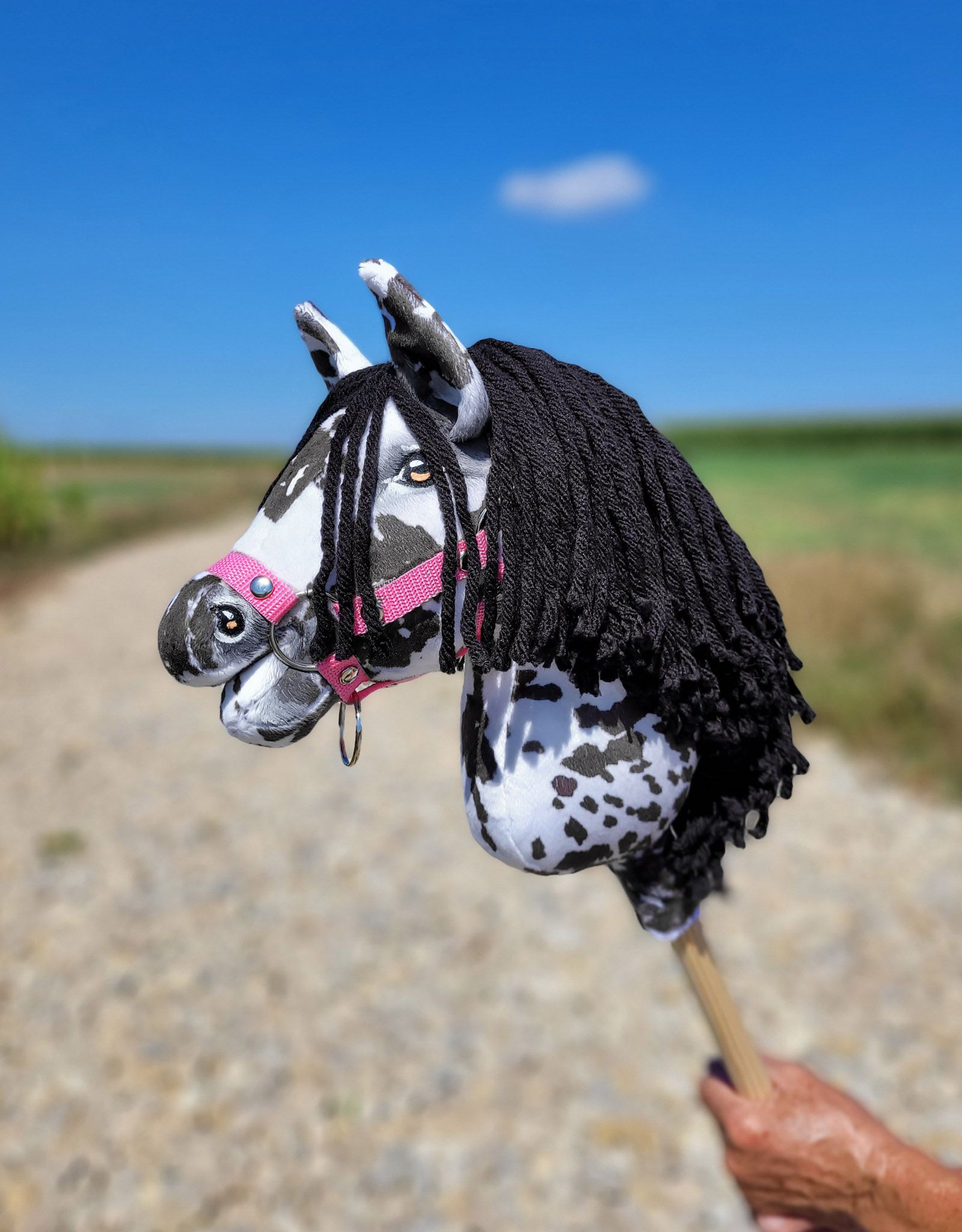Kleines Super Steckenpferd - Format A4. Realistisch, handgenäht, handbemalt und schattiert. Jedes Steckenpferd ist ein Unikat. Sorgfältig geformt, um einem echten Pferd so weit wie möglich zu entsprechen. Sehr stabil - verdreht sich nicht und bewegt sich nicht. Im Inneren eine spezielle stabile Konstruktion, leicht, aber kräftig, um das Pferd stabil und haltbar zu machen.