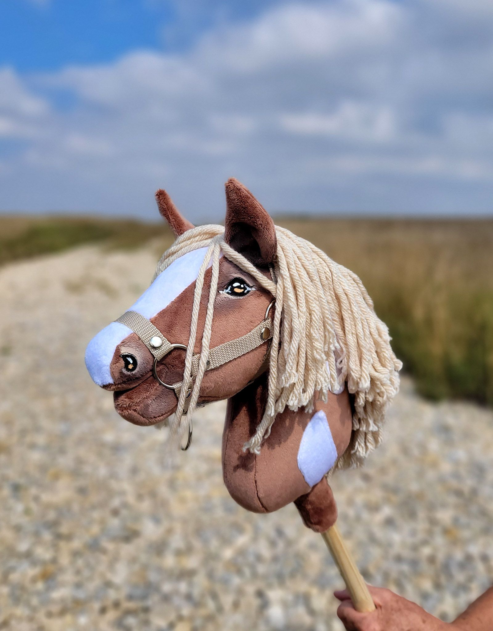 Kleines Super Steckenpferd - Format A4. Realistisch, handgenäht, handbemalt und schattiert. Jedes Steckenpferd ist ein Unikat. Sorgfältig geformt, um einem echten Pferd so weit wie möglich zu entsprechen. Sehr stabil - verdreht sich nicht und bewegt sich nicht. Im Inneren eine spezielle stabile Konstruktion, leicht, aber kräftig, um das Pferd stabil und haltbar zu machen.