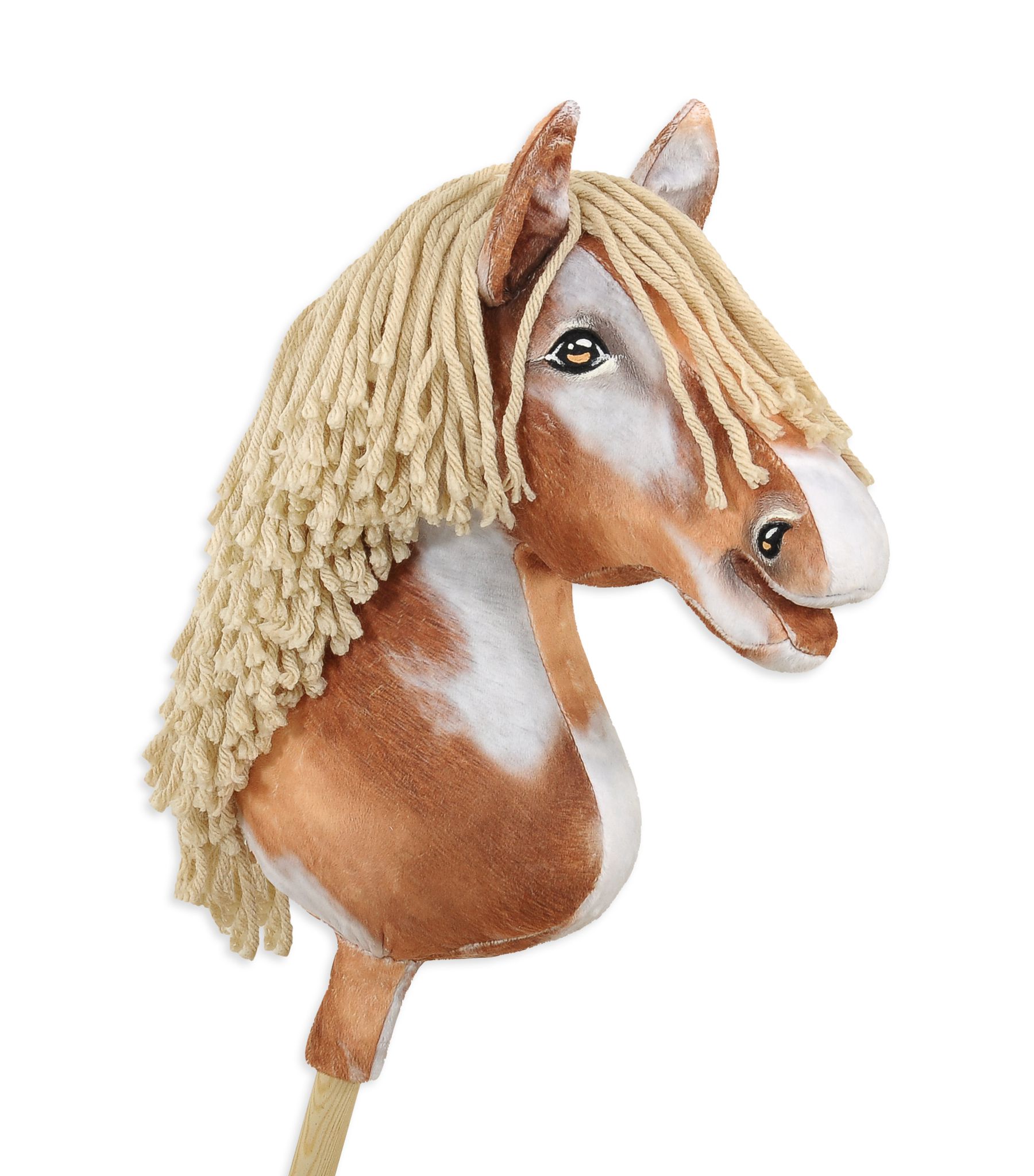 Tobiano Hobby Horse ist sorgfältig und genau handbemalt und schattiert, um wie ein echtes Pferd auszusehen. Wir verwenden nur zugelassene, umweltfreundliche Textilfarben.