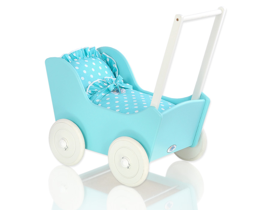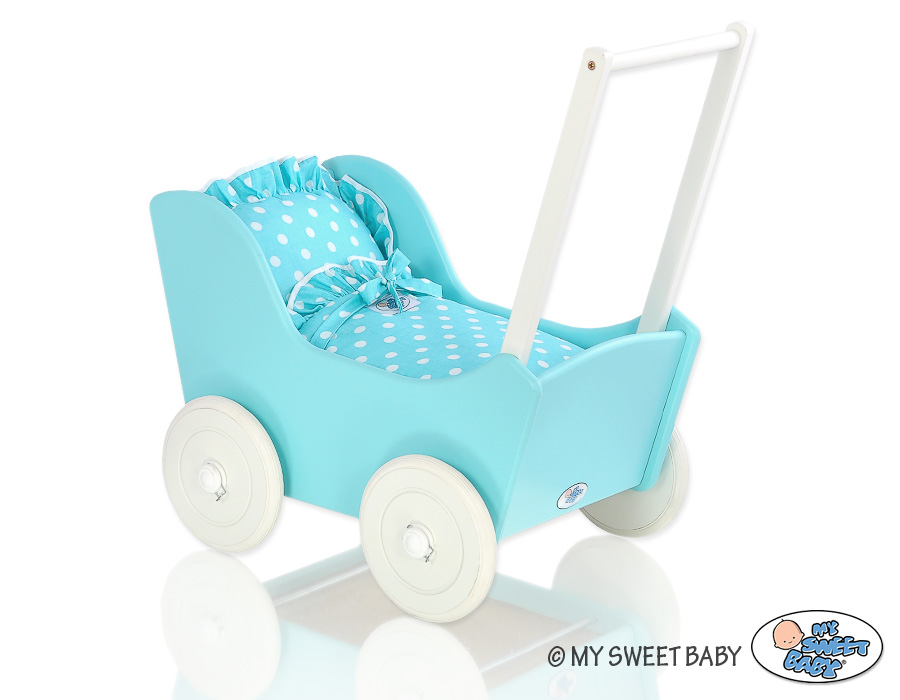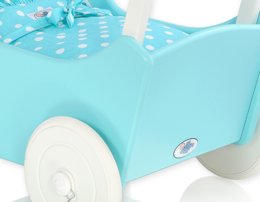 Puppenawagen mit Bettwäsche Mila Türkis Weiß 135027-552 Ein wundervoller Spiel - Puppenwagen perfekt als Geschenk geeignet.Der Wagen ist aus sicheren Materialien gefertigt.