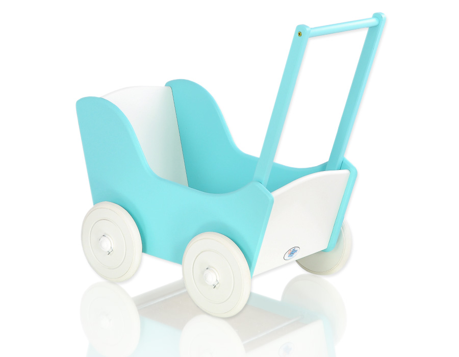 Holzpuppenwagen Weiß Türkis 135026Holzpuppenwagen Weiß Türkis 135026