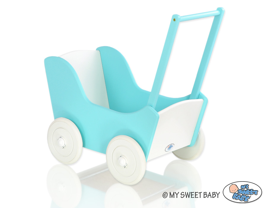 Stubenwagen » Spielzeug Kuscheltiere » Puppenwagen und Spielzeug » Puppenwagen aus Holz » Türkis Holzpuppenwagen » Holzpuppenwagen Weiß Türkis 135026