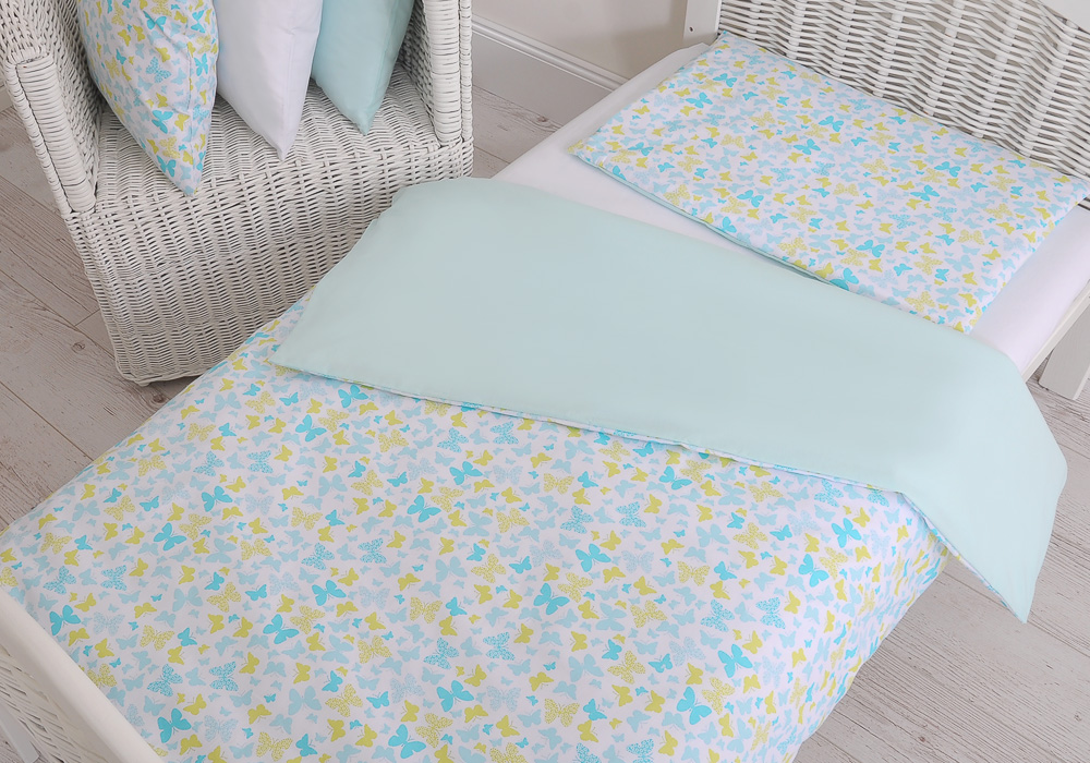 Das Bettwäsche-Set enthält keine Füllung. Schmetterlinge Blaue Junior 140x200 Bettwäsche Juniorbett