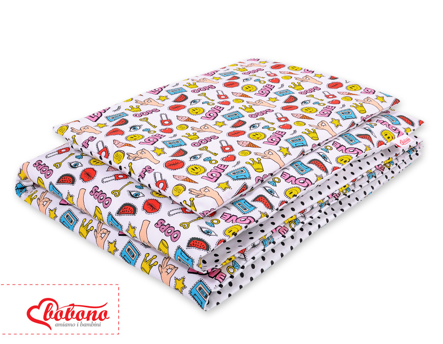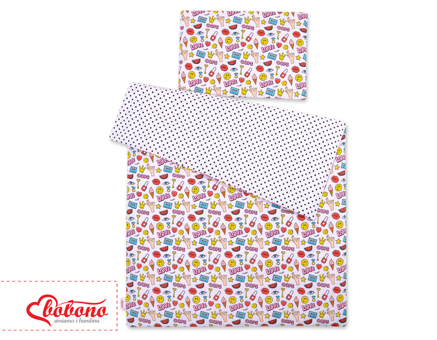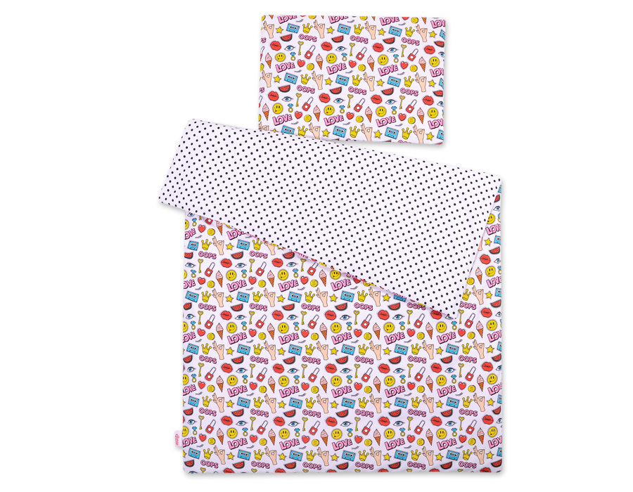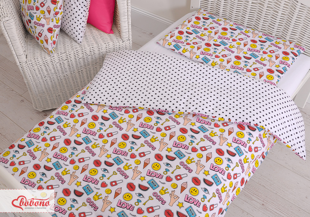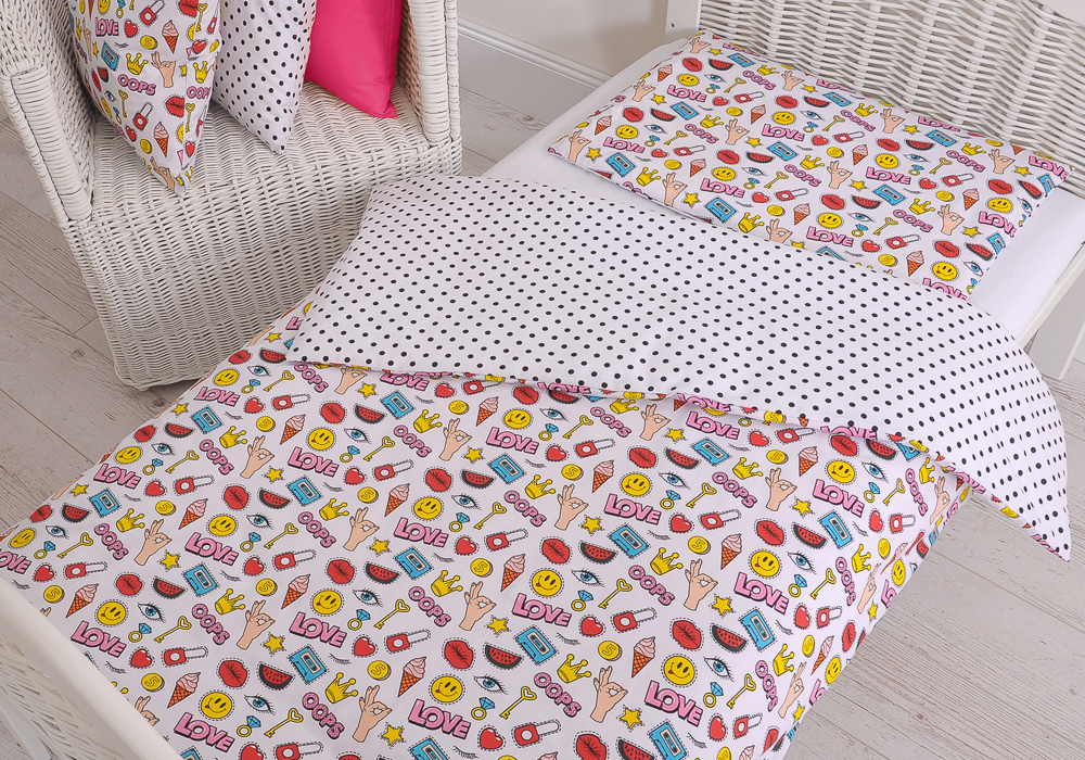 Juniorbett Bettwäsche Set 2-tlg 140x200 Junior - love In der bunte KinderBettwäsche verbringt der kleine Sprössling eine erholsame Nacht. Hochwertig aus Baumwolle gefertigt.