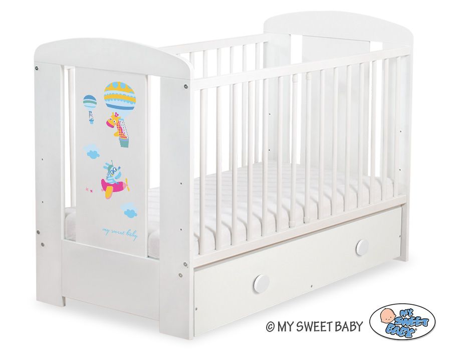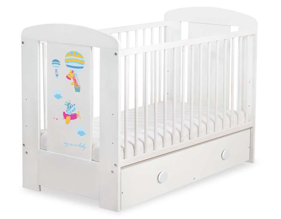 Stubenwagen » Babybett 60x120 cm » Babybetten 120x60cm mit Schublade » Babybett mit Schublade 60x120 Happy » Kinderbett 120x60cm Happy balloons mit Schublade MAXI