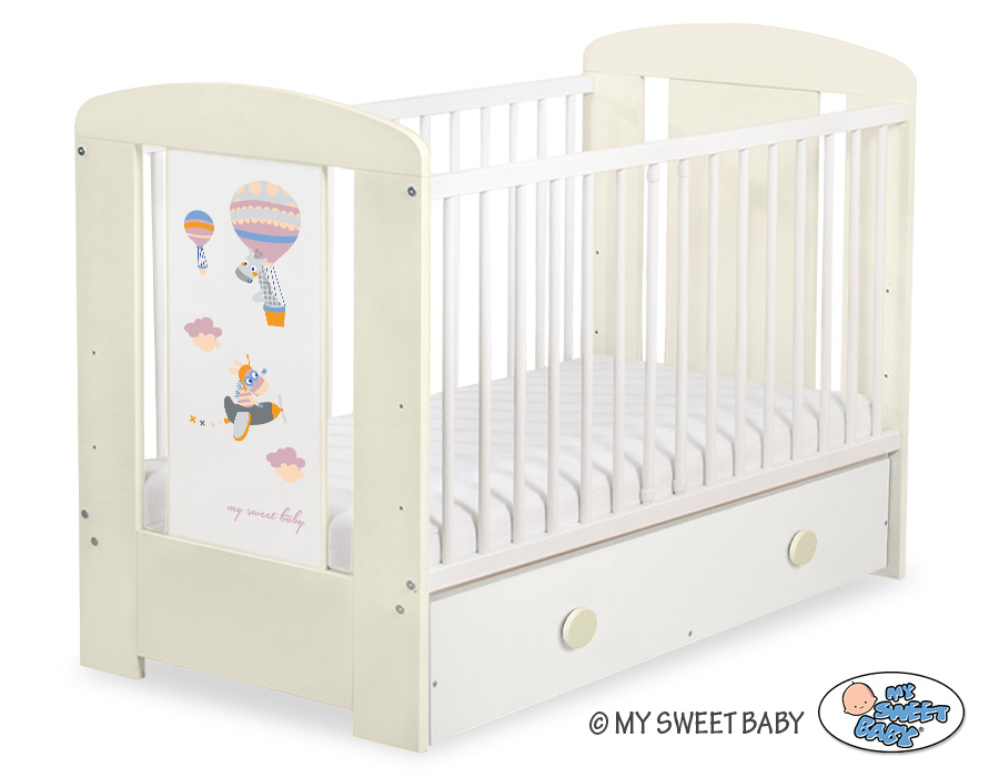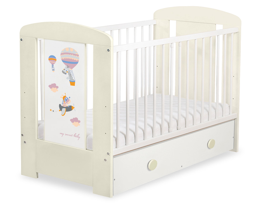 Stubenwagen » Babybett 60x120 cm » Babybetten 120x60cm mit Schublade » Babybett mit Schublade 60x120 Happy » Kinderbett 120x60cm Happy balloons mit Schublade MAXI