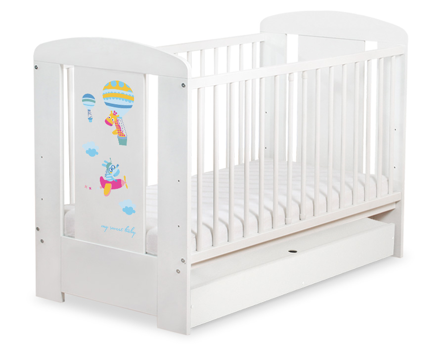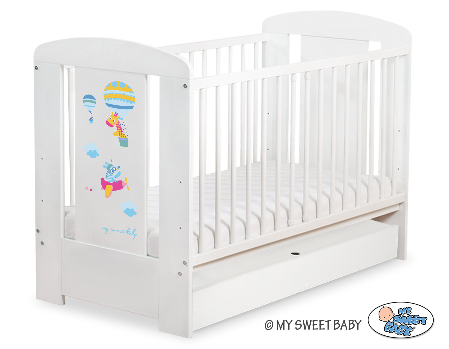 Stubenwagen » Babybett 60x120 cm » Babybetten 120x60cm mit Schublade » Babybett mit Schublade 60x120 Happy » Kinderbett 120x60cm Happy balloons mit Schublade STANDARD