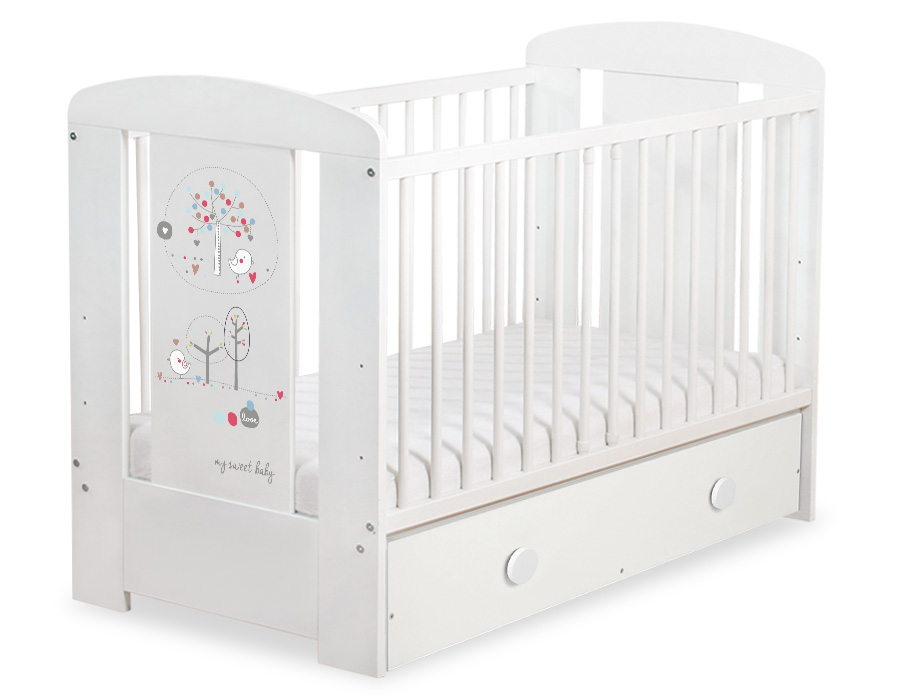 Holzbettchen mit einer Graphik auf der Vorderplatte mit MAXI BETTSCHUBLADE