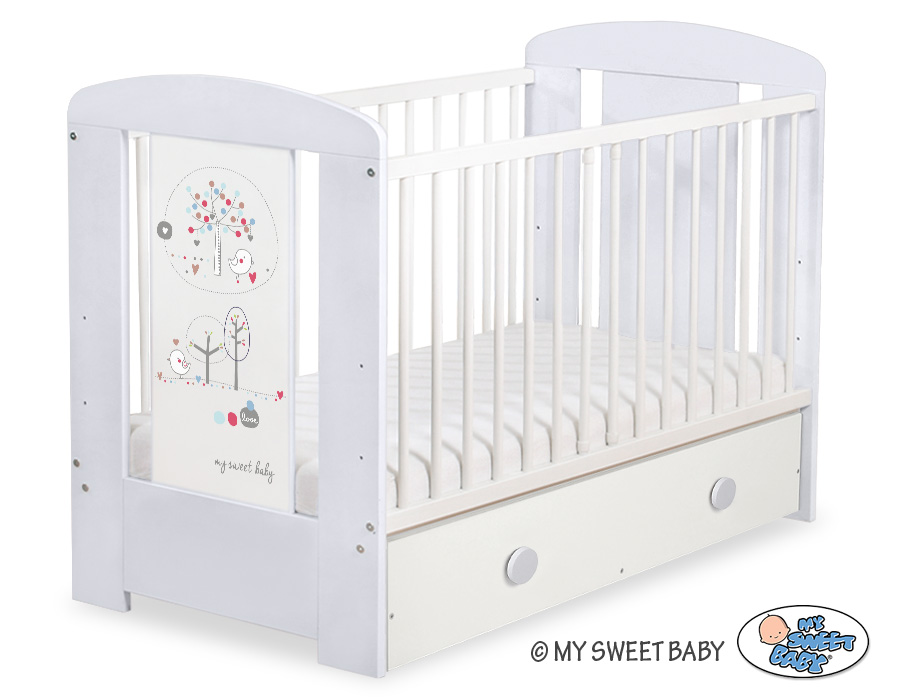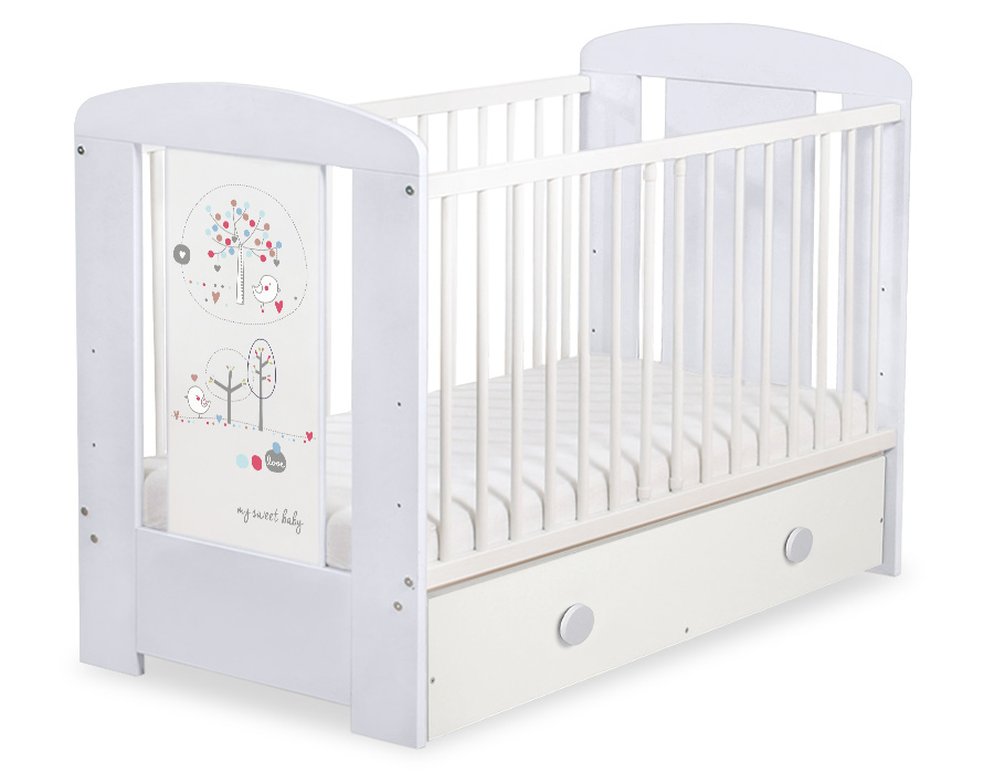 Stubenwagen » Babybett 60x120 cm » Babybetten 120x60cm mit Schublade » Babybett mit Schublade 60x120 Happy » Kinderbett 120x60cm Lovely birds mit Schublade MAXI