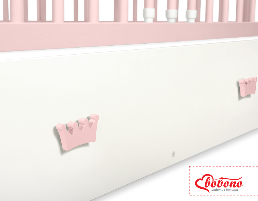Holzbettchen mit Krone an den Fronten mit MAXI BETTSCHUBLADE