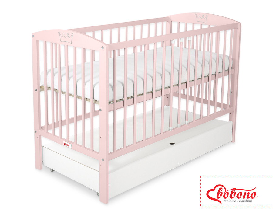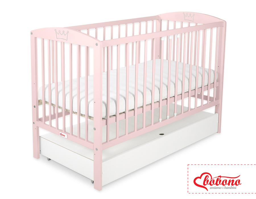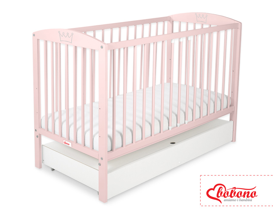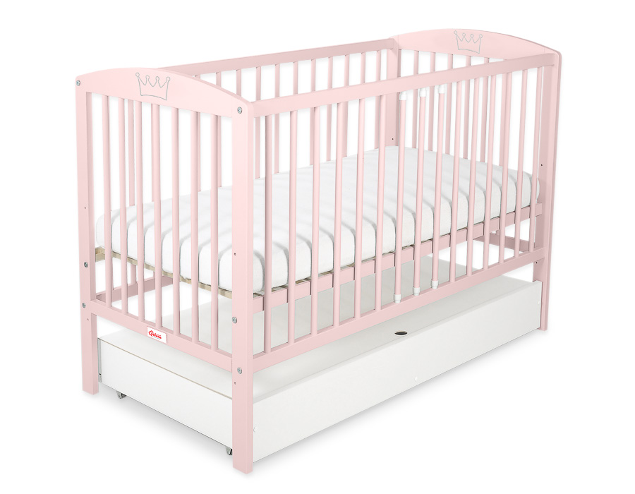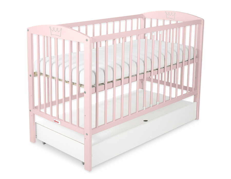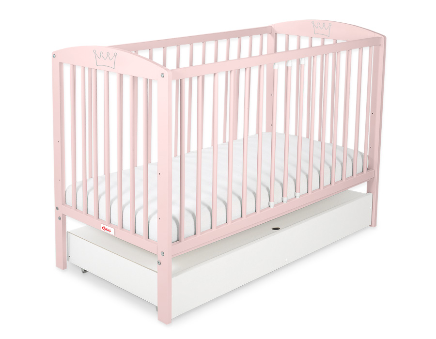 Stubenwagen » Babybett 60x120 cm » Babybetten 120x60cm mit Schublade » Babybett mit Schublade 60x120 Little Prince / Princess » Kinderbett 120x60cm mit Krone nr 5006-01 - puderrosa mit Schublade STANDARD