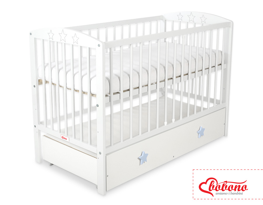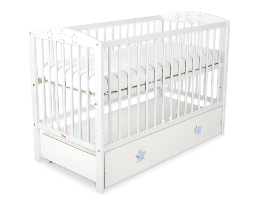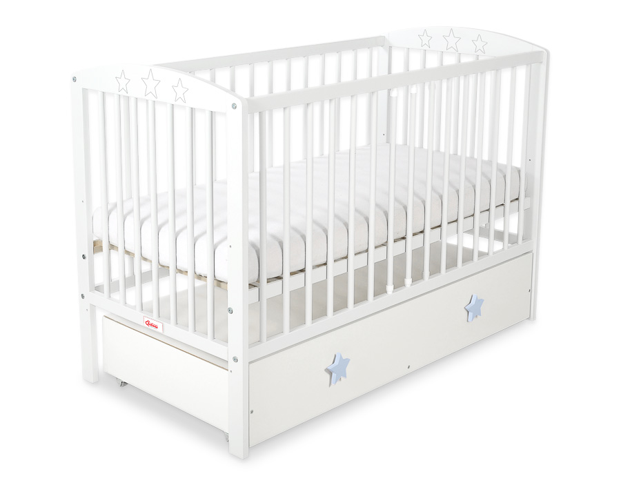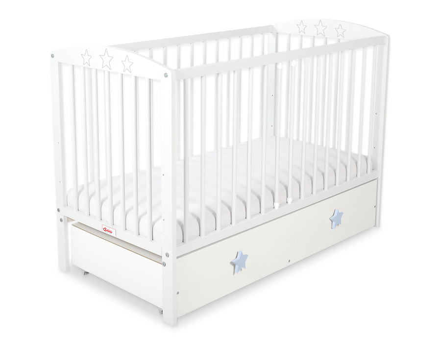 Stubenwagen » Babybett 60x120 cm » Babybetten 120x60cm mit Schublade » Babybett mit Schublade 60x120 Sternchen » Kinderbett 120x60cm mit Sternen nr 5002-07-07 - weiß mit Schublade MAXI