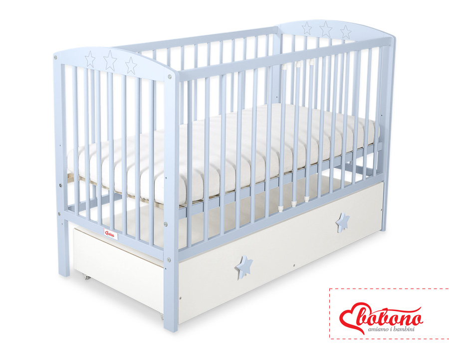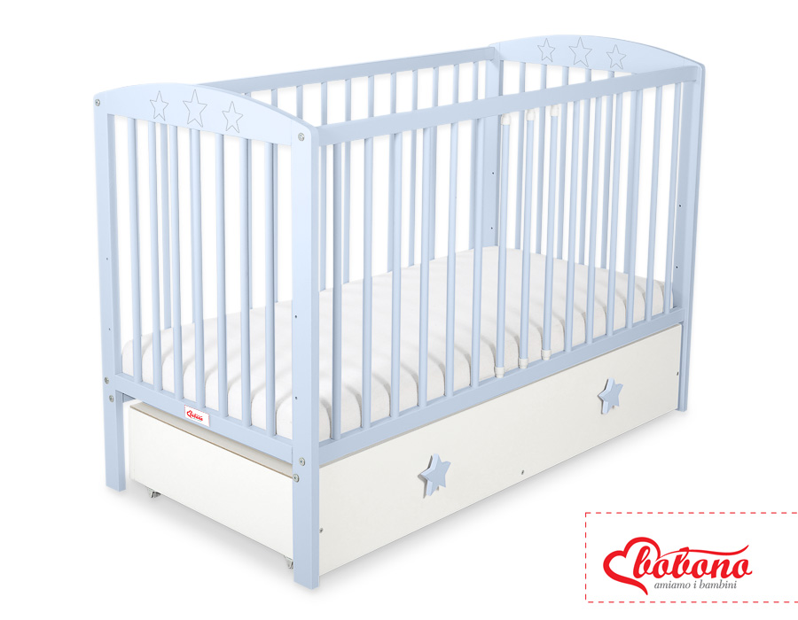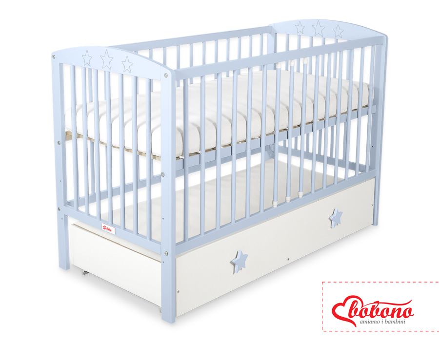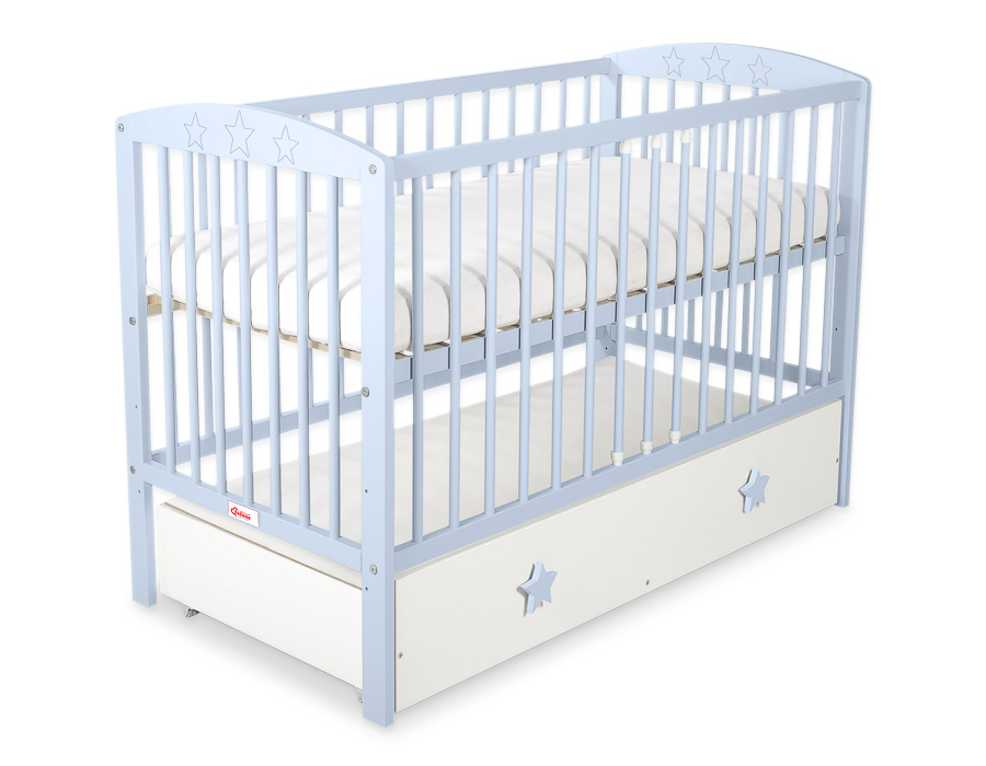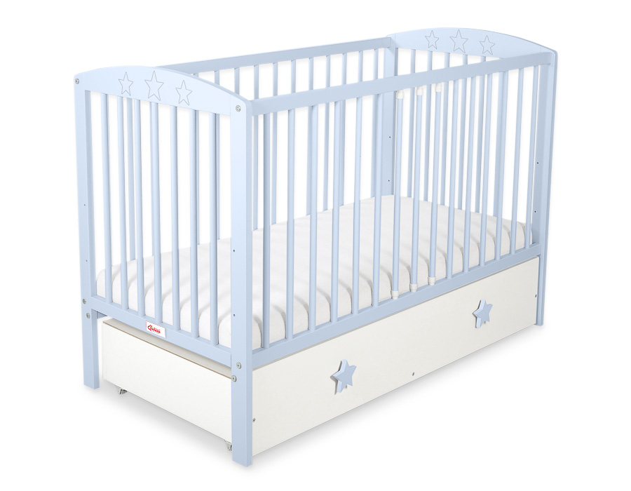 Stubenwagen » Babybett 60x120 cm » Babybetten 120x60cm mit Schublade » Babybett mit Schublade 60x120 Sternchen » Kinderbett 120x60cm mit Sternen nr 5002-07-07 - weiß mit Schublade MAXI