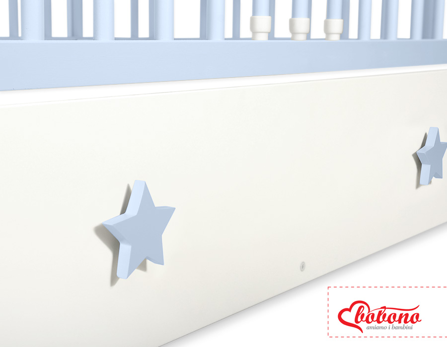 Holzbettchen 120x60cm mit Sternen an den Fronten mit MAXI BETTSCHUBLADE