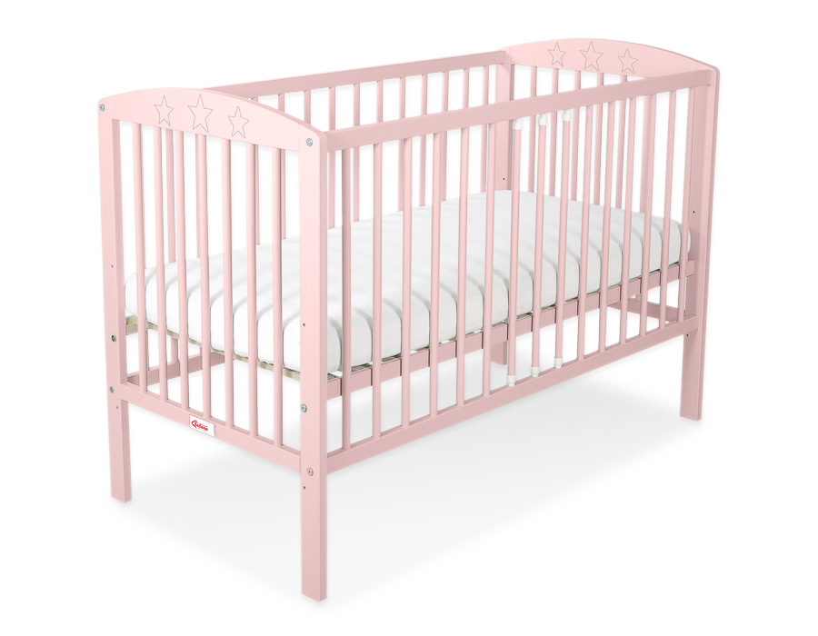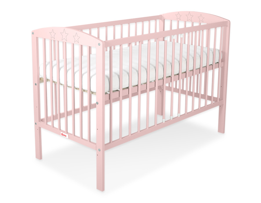Stubenwagen » Babybett 60x120 cm » Babybett 60x120 Sternen » Kinderbett 120x60cm mit Sternen Puderrosa Gitterbett