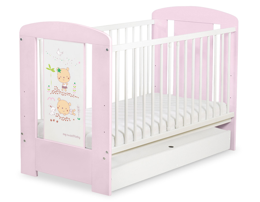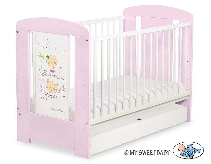 Stubenwagen » Babybett 60x120 cm » Babybetten 120x60cm mit Schublade » Babybett mit Schublade 60x120 Happy » Kinderbett 120x60cm Sweet bears mit Schublade STANDARD