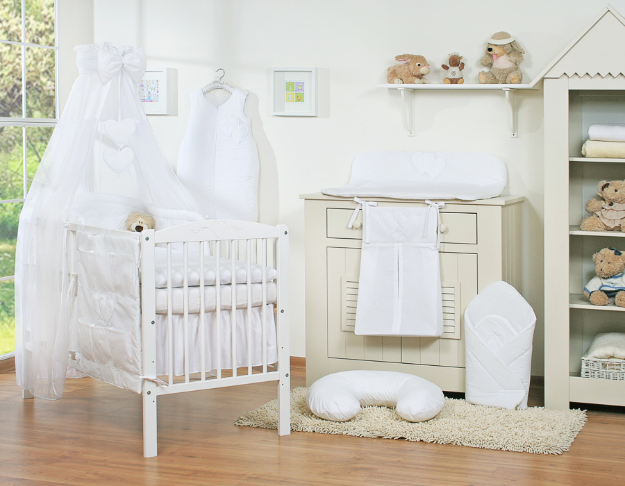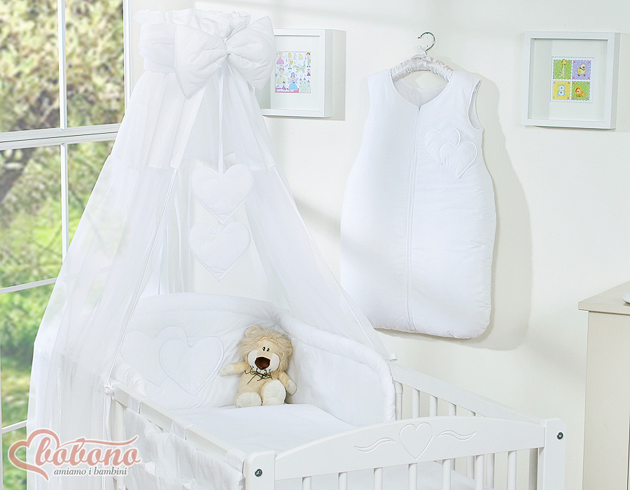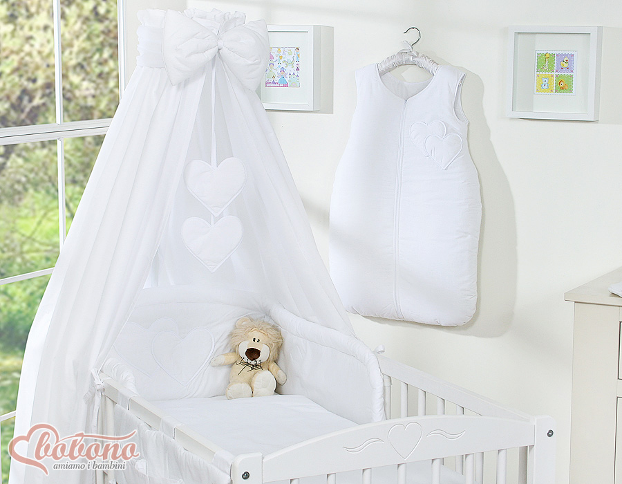 Kinderbett 140x70 Bettwäsche Set 7-tlg mit Himmel - Hängende Herzen weiß In der liebevoll gestalteten Bettwäsche lässt es sich herrlich schlummern. Die hautverträgliche Qualität lädt zum Träumen ein.