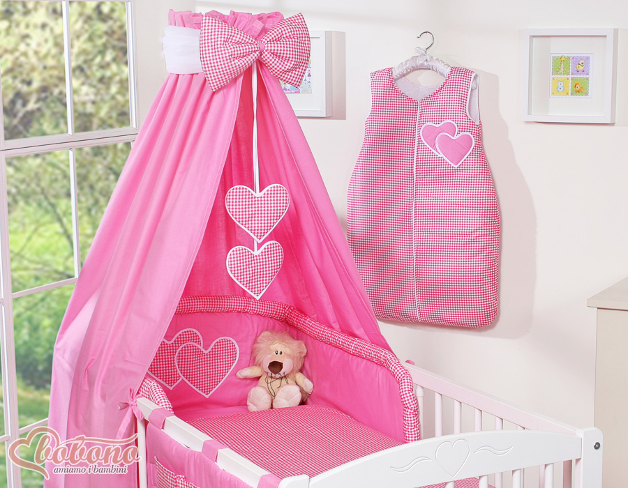 Kinderbett Bettwäsche 100x135 Set 7-tlg mit Himmel für Babybett - Hängende Herzen dunkel rosa kariertKinderbett Bettwäsche 100x135 Set 7-tlg mit Himmel für Babybett - Hängende Herzen dunkel rosa kariertKinderbett Bettwäsche 100x135 Set 7-tlg mit Himmel für Babybett - Hängende Herzen dunkel rosa kariertKinderbett Bettwäsche 100x135 Set 7-tlg mit Himmel für Babybett - Hängende Herzen dunkel rosa kariert