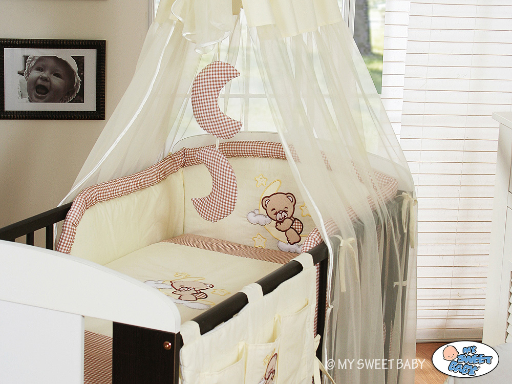 Stubenwagen » Bettwäsche für Babys » Bettwäsche für Babybett GUTE NACHT » Bettwäsche Sets für Babybett 140cm » Bettwäsche Set 7-tlg mit Himmel (S) » Kinderbett Bettwäsche Set 7-tlg mit Betthimmel (S70) - Gute Nacht braun