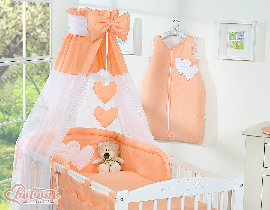 Kinderbett Bettwäsche Set 7-tlg mit Himmel - Hängende Herzen pfirsich