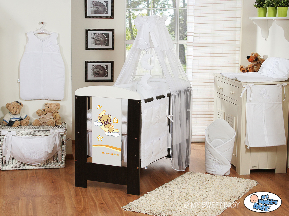 Stubenwagen » Bettwäsche für Babys » Bettwäsche für Babybett GUTE NACHT » Bettwäsche Sets für Babybett 120cm » Bettwäsche Set 7-tlg mit Himmel (S) » Kinderbett Bettwäsche Set 7-tlg mit Himmel (S60) - Gute Nacht weiß