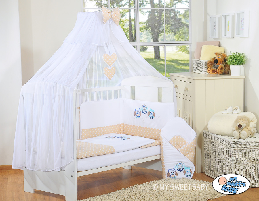 Kinderbett Bettwäsche Set 7-tlg mit Moskitonetz - Eulen Bigi Zibi & Adele beigeKinderbett Bettwäsche Set 7-tlg mit Moskitonetz - Eulen Bigi Zibi & Adele beige