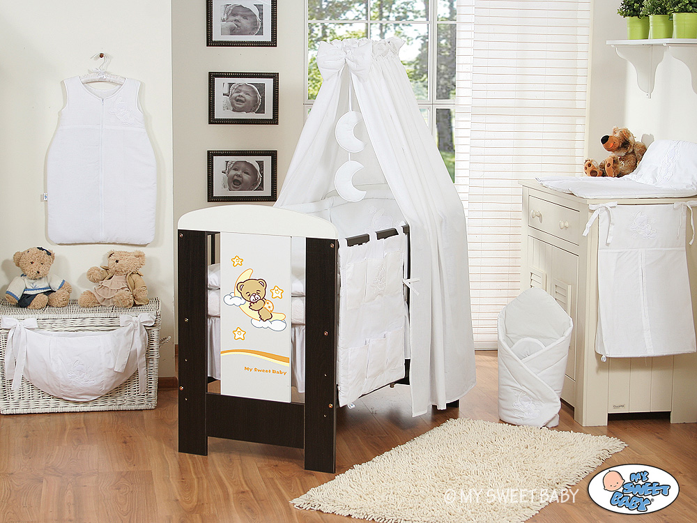Stubenwagen » Bettwäsche für Babys » Bettwäsche für Babybett GUTE NACHT » Bettwäsche Sets für Babybett 120cm » Bettwäsche Set 7-tlg mit Moskitonetz (L) » Kinderbett Bettwäsche Set 7-tlg mit Moskitonetz (L60) - Gute Nacht weiß
