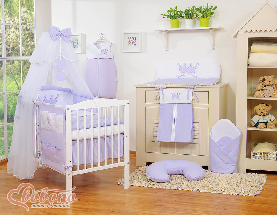 Stubenwagen » Bettwäsche für Babys » Bettwäsche für Babybett Kollektion LITTLE PRINCE / PRINCESS » Bettwäsche Sets für Babybett 140cm » Baby Bettwäscheset 7-tlg mit Moskitonetz Kleiner Prinz Kleine Prinzessin » Kinderbett Bettwäsche Set 7-tlg mit Moskitonetz - Little Prince/Princess lila