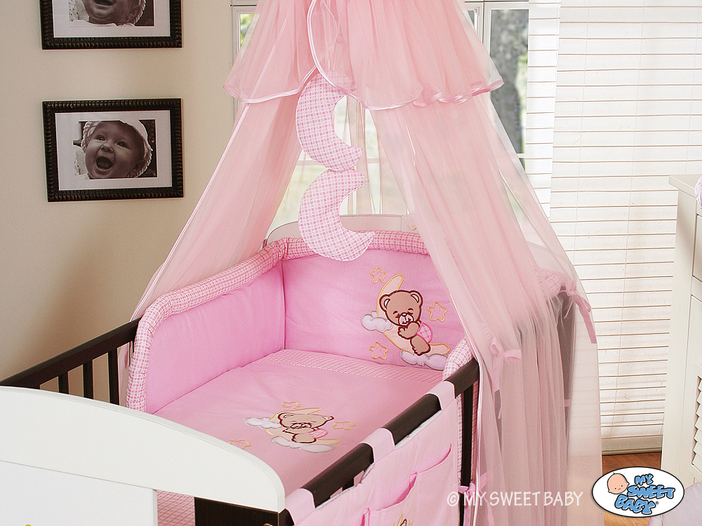 Stubenwagen » Bettwäsche für Babys » Bettwäsche für Babybett GUTE NACHT » Bettwäsche Sets für Babybett 140cm » Bettwäsche Set 7-tlg mit Moskitonetz (S) » Kinderbett Bettwäsche Set 7-tlg mit Moskitonetz (S70) - Gute Nacht rosa