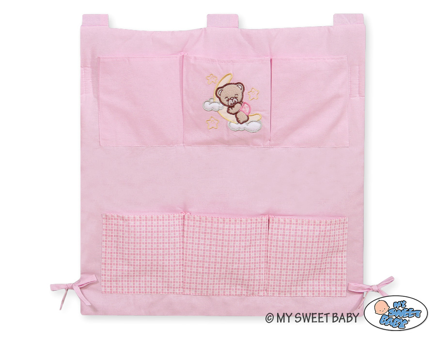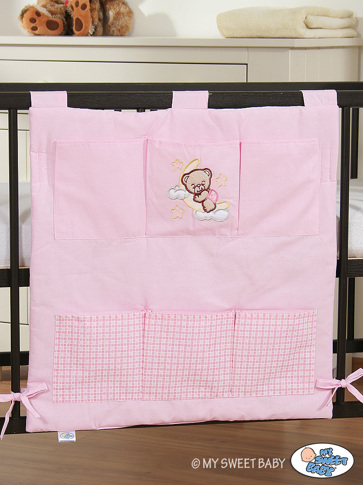 Kinderbett-Tasche rosa - Gute Nacht rosa Betttasche mit 6 praktischen Aufbewahrungstaschen für Spielzeug, Windeln, Feuchttücher, Schnuller. Das Kuscheltier finden hier auch Platz.
