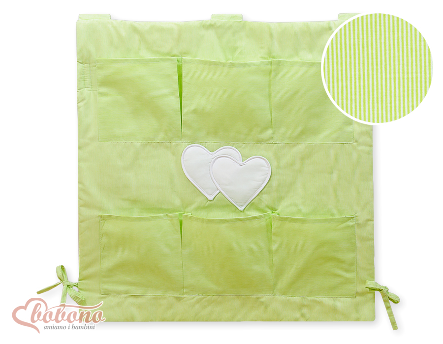 Stubenwagen » Bettwäsche für Babys » Bettwäsche für Babybett HERZEN » Kinderbetttasche » Kinderbetttasche - Hängende Herzen grün gestreift