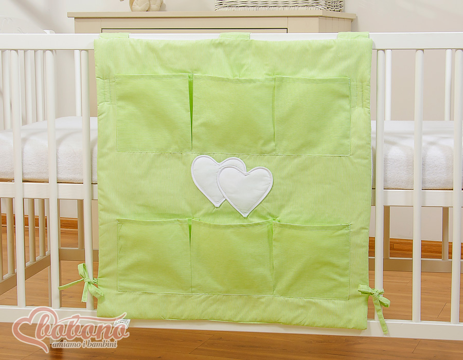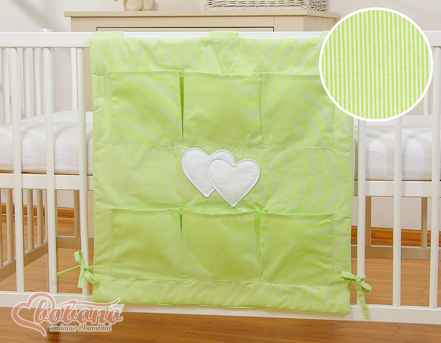Kinderbetttasche - Hängende Herzen grün gestreift