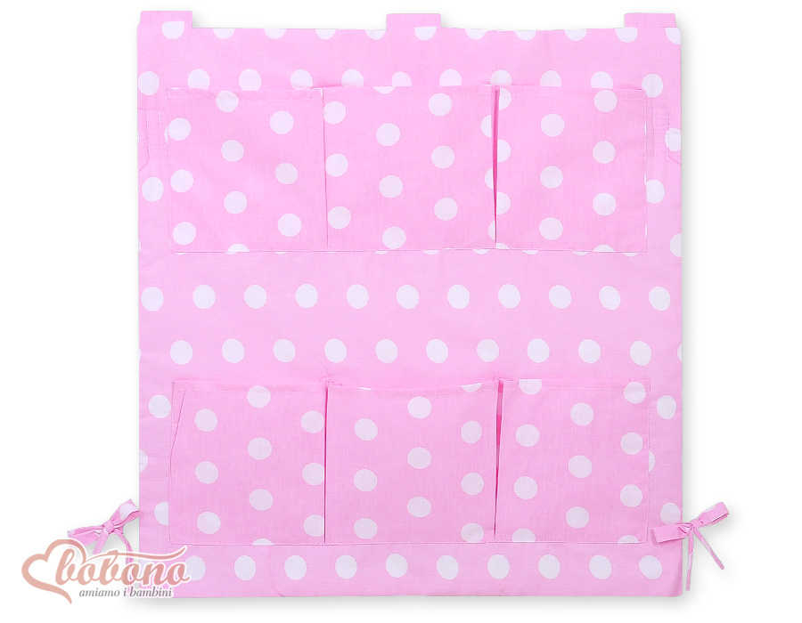 - 6Taschen, diebenutztwerden können, umWindeln, Feuchttücher zu speichern -Waschen bei40°, -Mit Applikation. Größe:60x60cm. Tupfen Rosa Kinderbetttasche
