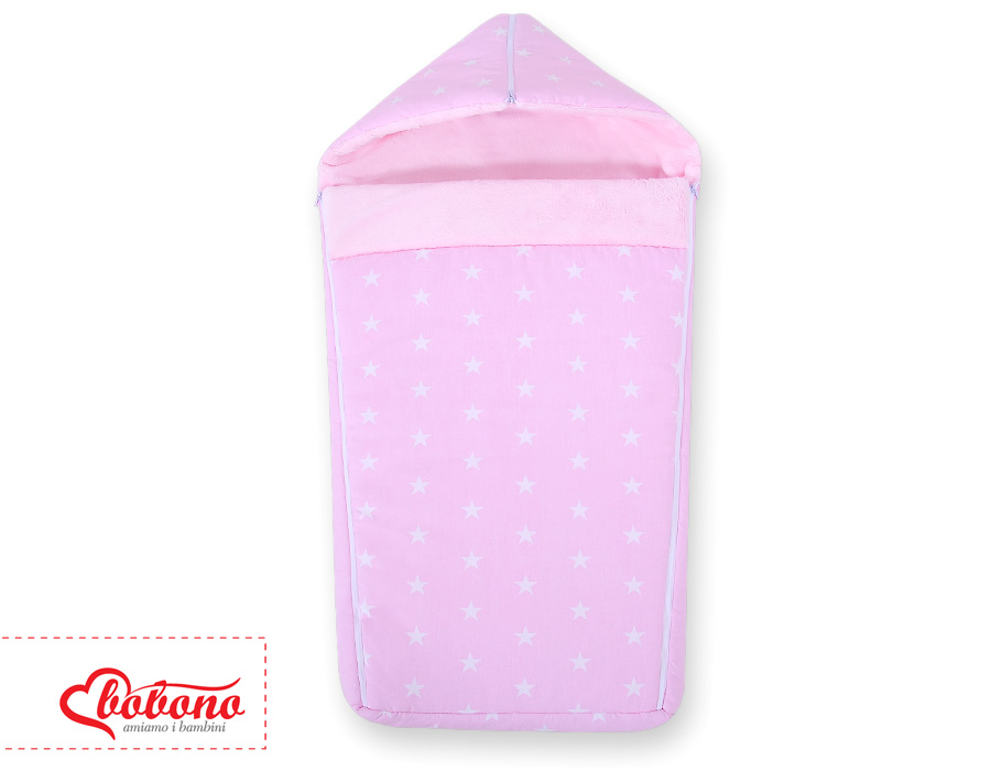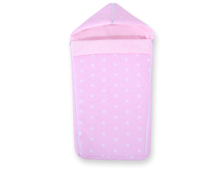 Kinderwagen Fußsack - Rosa Sternchen Ein weicher, flauschiger, großer und bequemer Kinderwagenschlafsack/Fußsack für kältere Tage aus 3 Materialschichten hergestellt. Garantiert eine lange Nutztung.